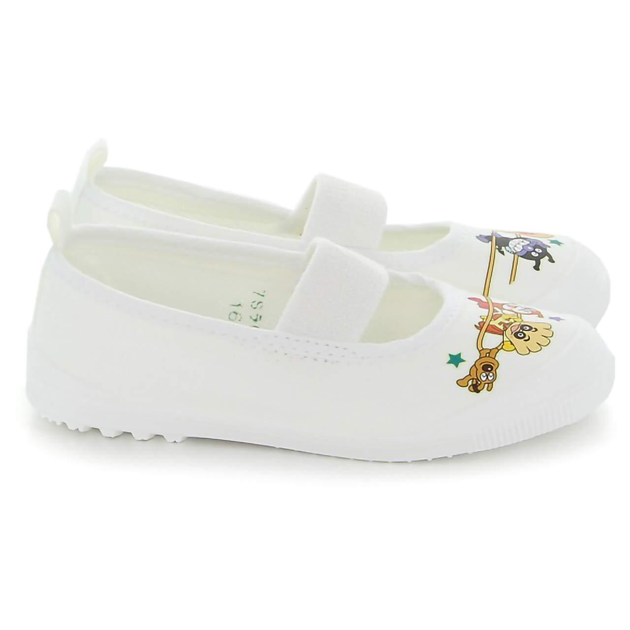みんな大好き「アンパンマン」のバレータイプの上履きです。甲部分には、アンパンマンと仲間たちのイラストがプリントされています。中敷の図柄で、右足と左足が一目で分かるので、左右の履き間違えを防ぎます。