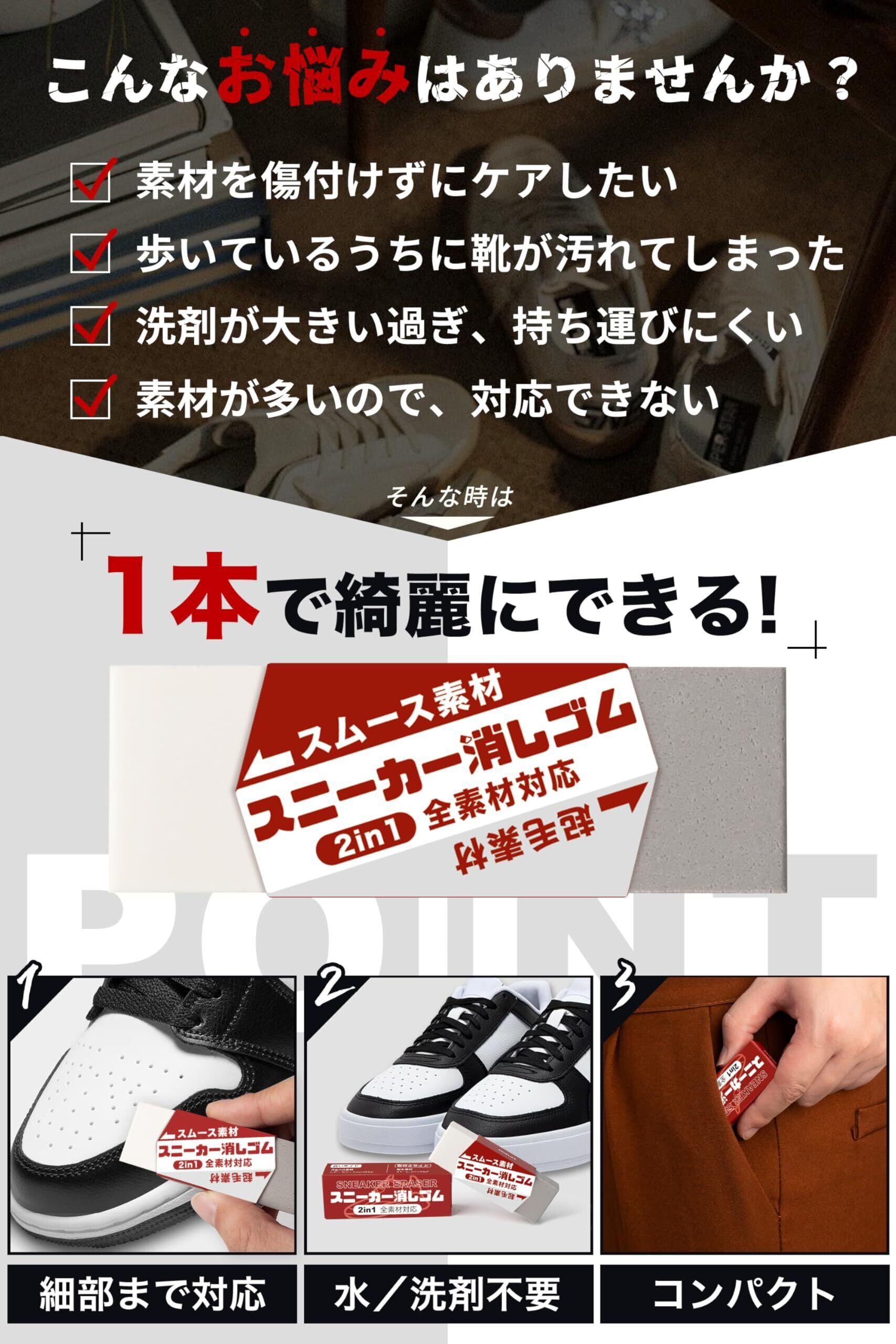 スニーカー 消しゴム 靴 【2in1・お手軽・スニーカー全対応】 スエード スウェード スニーカー クリーナー 汚れ落とし 消しゴム 靴用 黄ばみ落とし イレイザーシュークリーナー シューズクリーナー スニーカーケア 靴 手入れ レザー ラバー ヌバック 起毛皮 適応 靴磨き 便利 多用途 クリーンスティック スニーカー汚れ落とし 水洗い不要 コンパクト (2in1消しゴム1個)