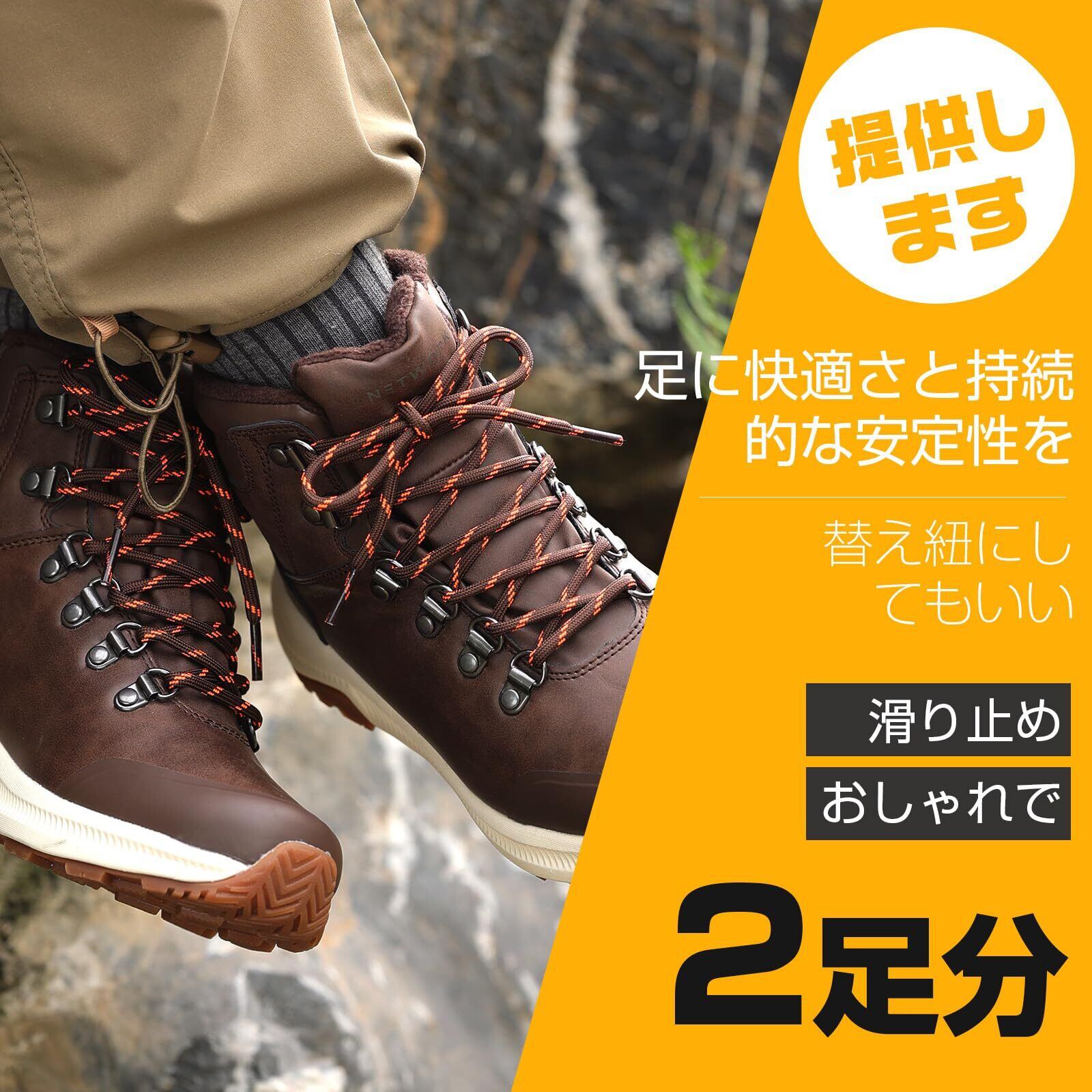【頑丈な丸シューレース】:しっかりとしたポリエステル素材から作られており、手触りが良く糸がほつれないです。ほどけにくく滑り止め、摩耗性、耐久性も高く、長時間使っても色落ちも変形もしません