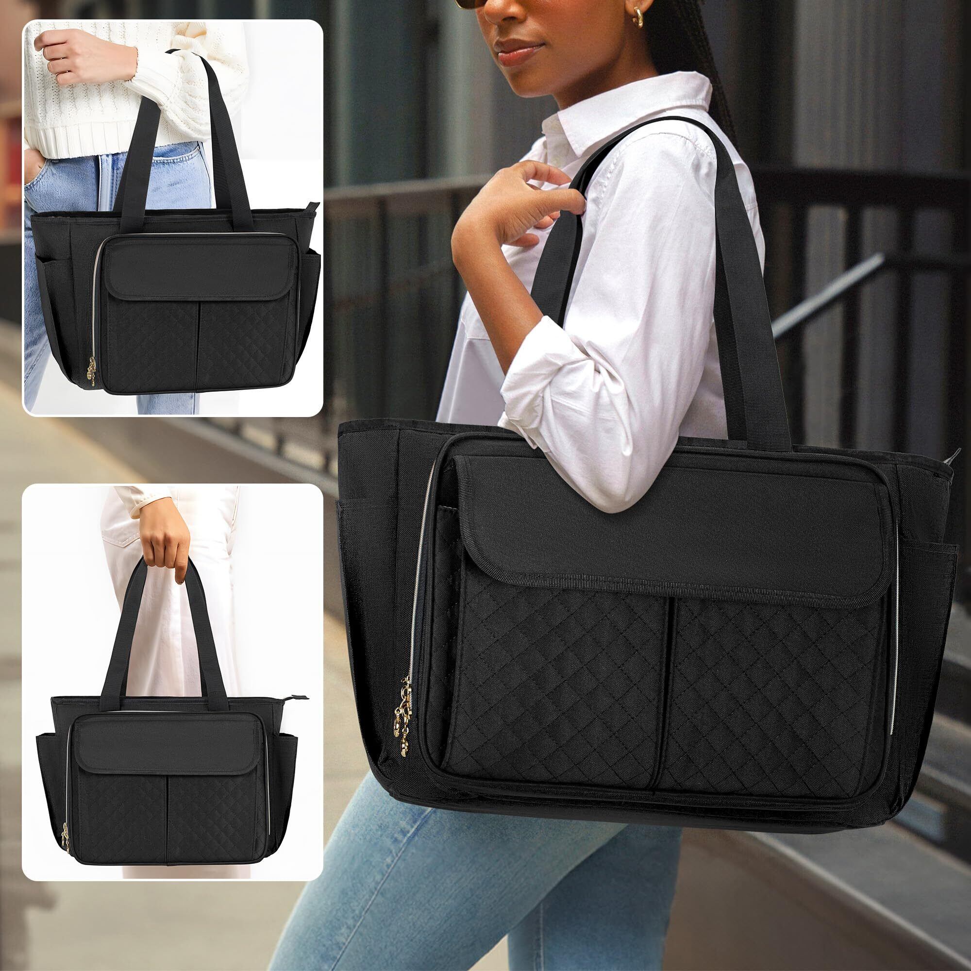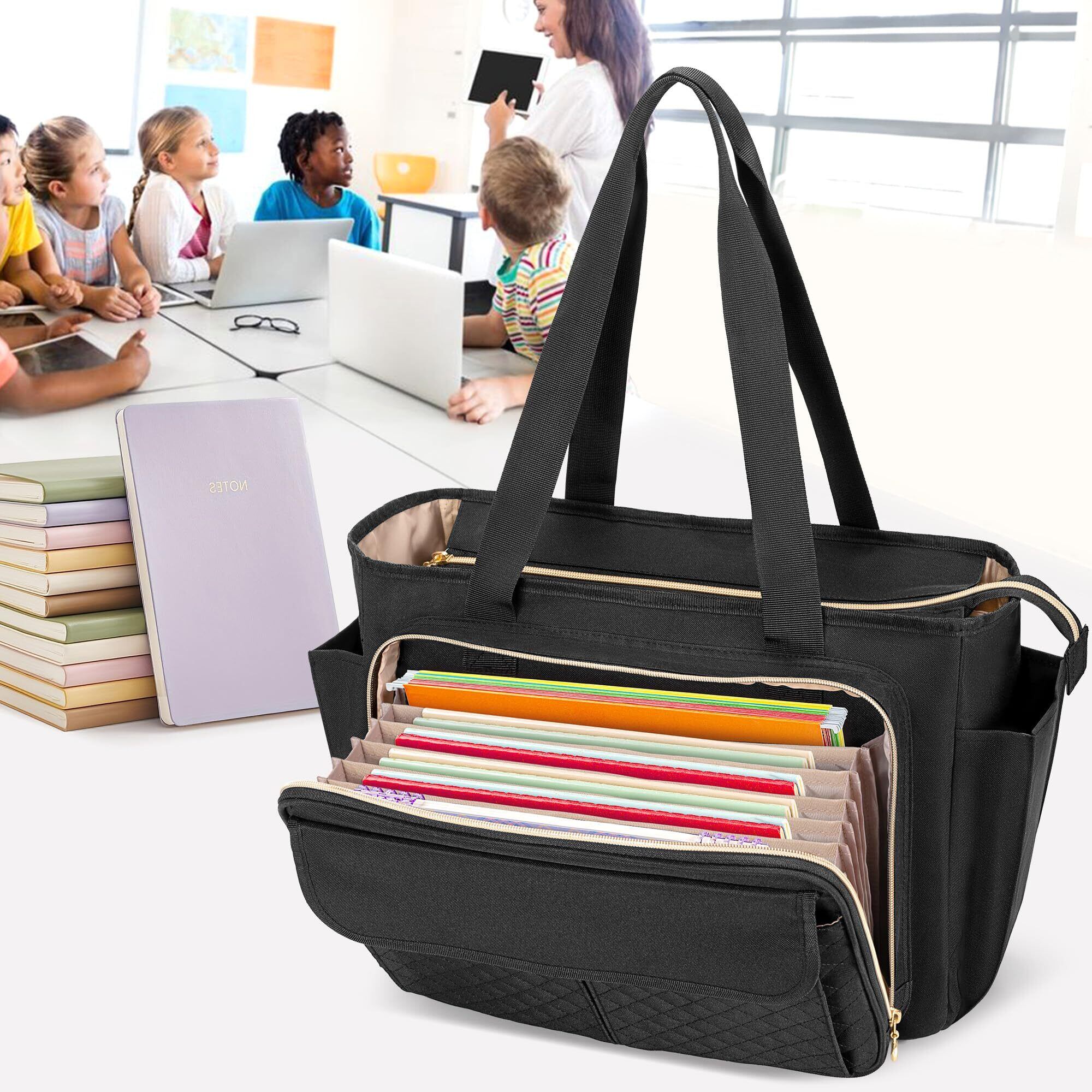 [Luxja] 教師バッグ オフィストートバッグ ファイル仕切りポケット付き 15.6インチPC対応 A4 通勤 通学 出張 多機能 ブラック