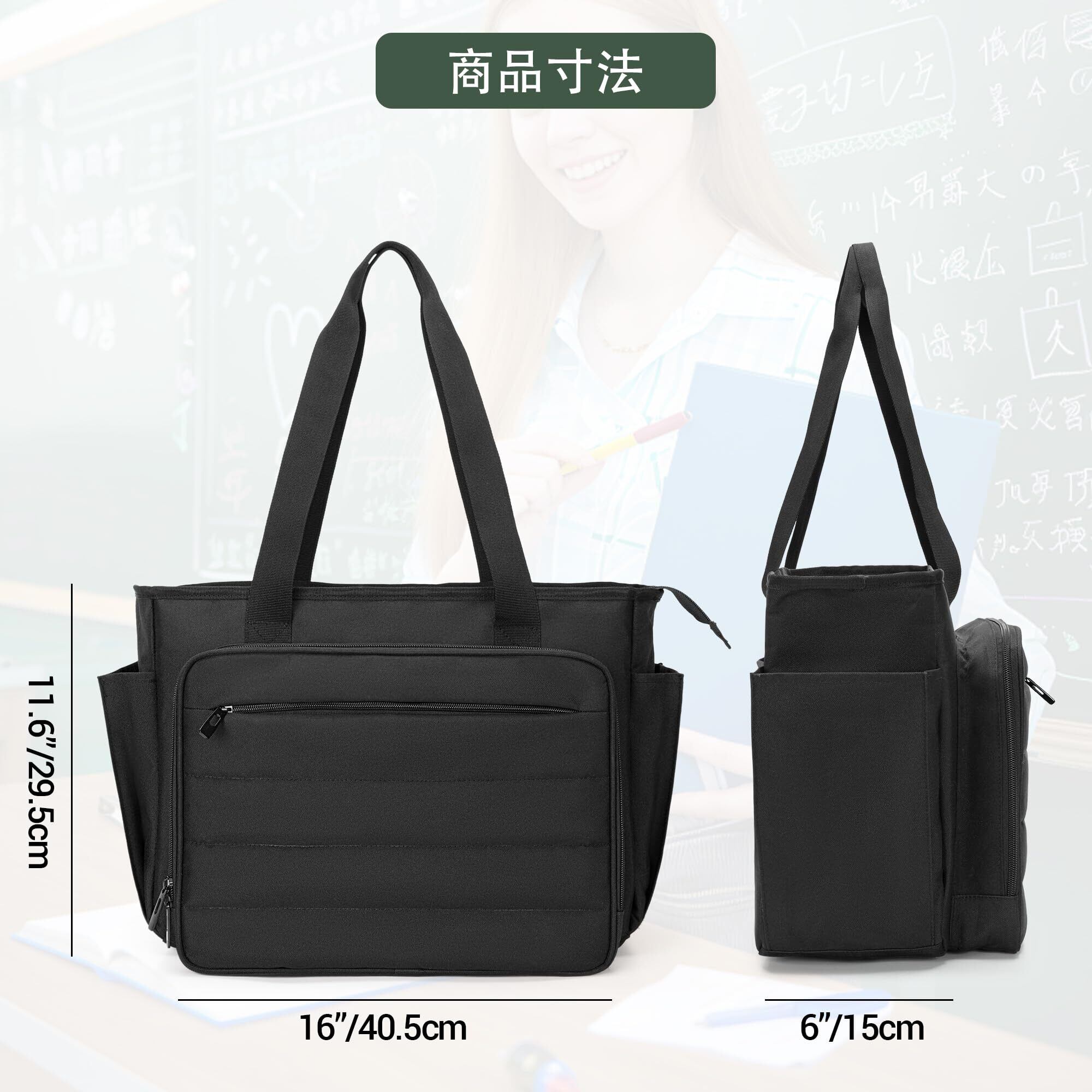 大容量教師バッグ: 大きいメイン室は、フォルダー、書類、バインダーなどの持ち運びには便利です。パッド入りのスリーブには、15.6インチのラップトップを収納できます。個人用品を収納できるメッシュポケットが付いています。(バッグのみ)