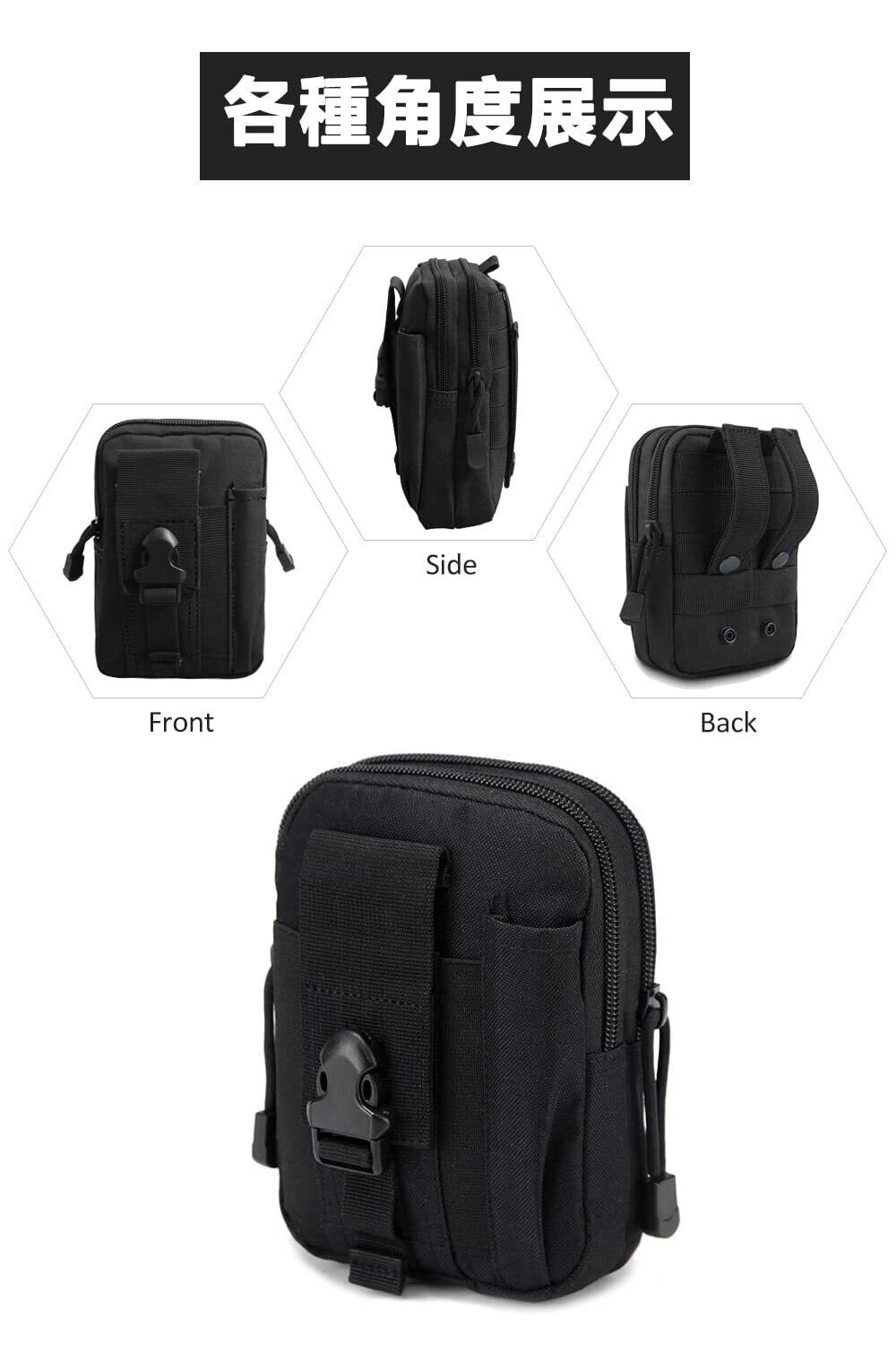 YFFSFDC 多機能ポーチ ベルトポーチ ウエストポーチ 小物入れ バッグ 携帯便利 大容量 登山 探検 キャンプ アウトドア用 ミリタリーポーチ(ブラック)