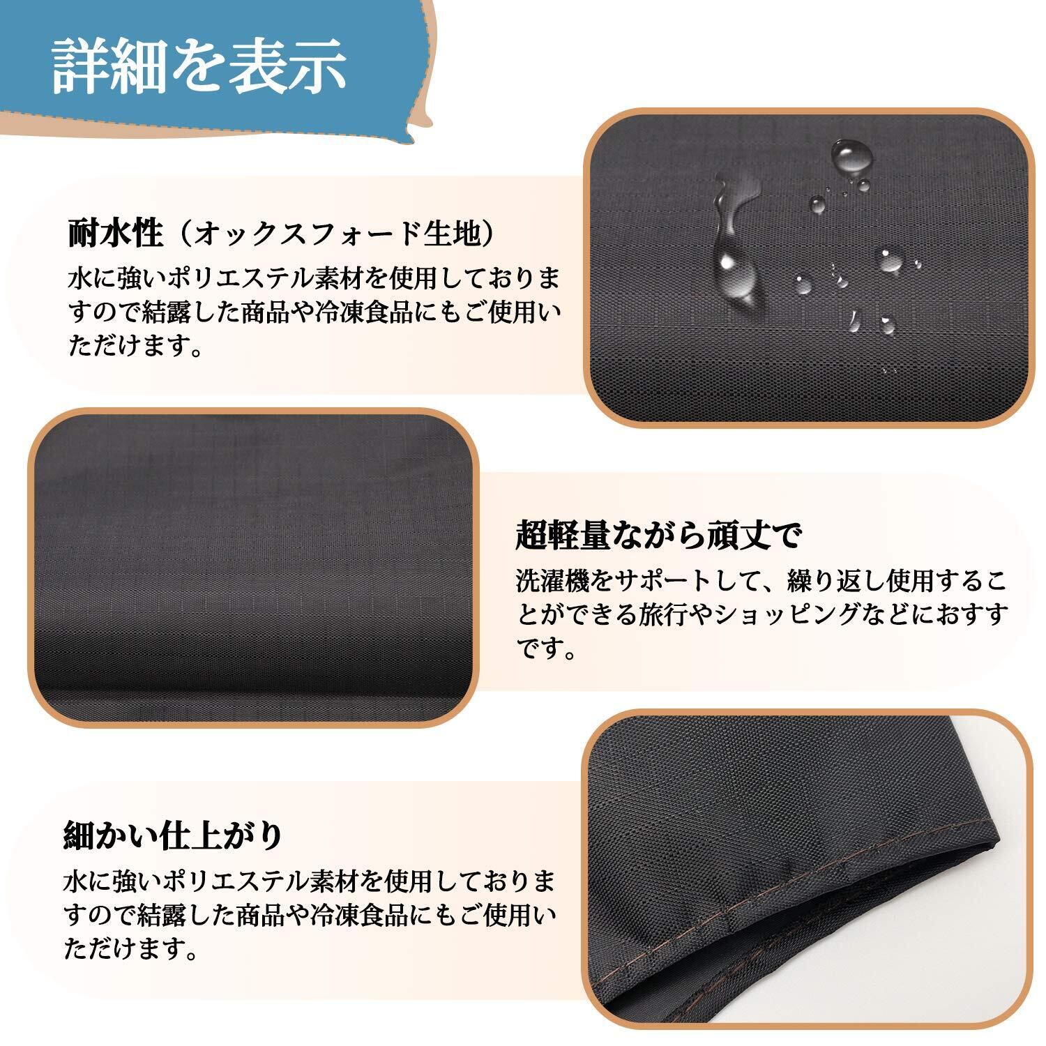 【大容量&耐荷重&畳むサイズ】耐加重20kg、折り畳み9cm x 13cm、広げると長さ35cm×幅23cm×高さ33cmと大容量エコバッグです。 手持ちの部分も幅を広く設計して、荷物持ち時の負担を減らすためです。 丈夫なポリエステル素材を使用しているので2Lペットボトル10本分20kgの荷物を入れても大丈夫です。 大きめのサイズのため、沢山買い物しても余裕を持って入ります。また、持ち手を幅広にしたため、肩に掛けても痛くなる事がありません。そのため旅行の補助バックとしても使えます。