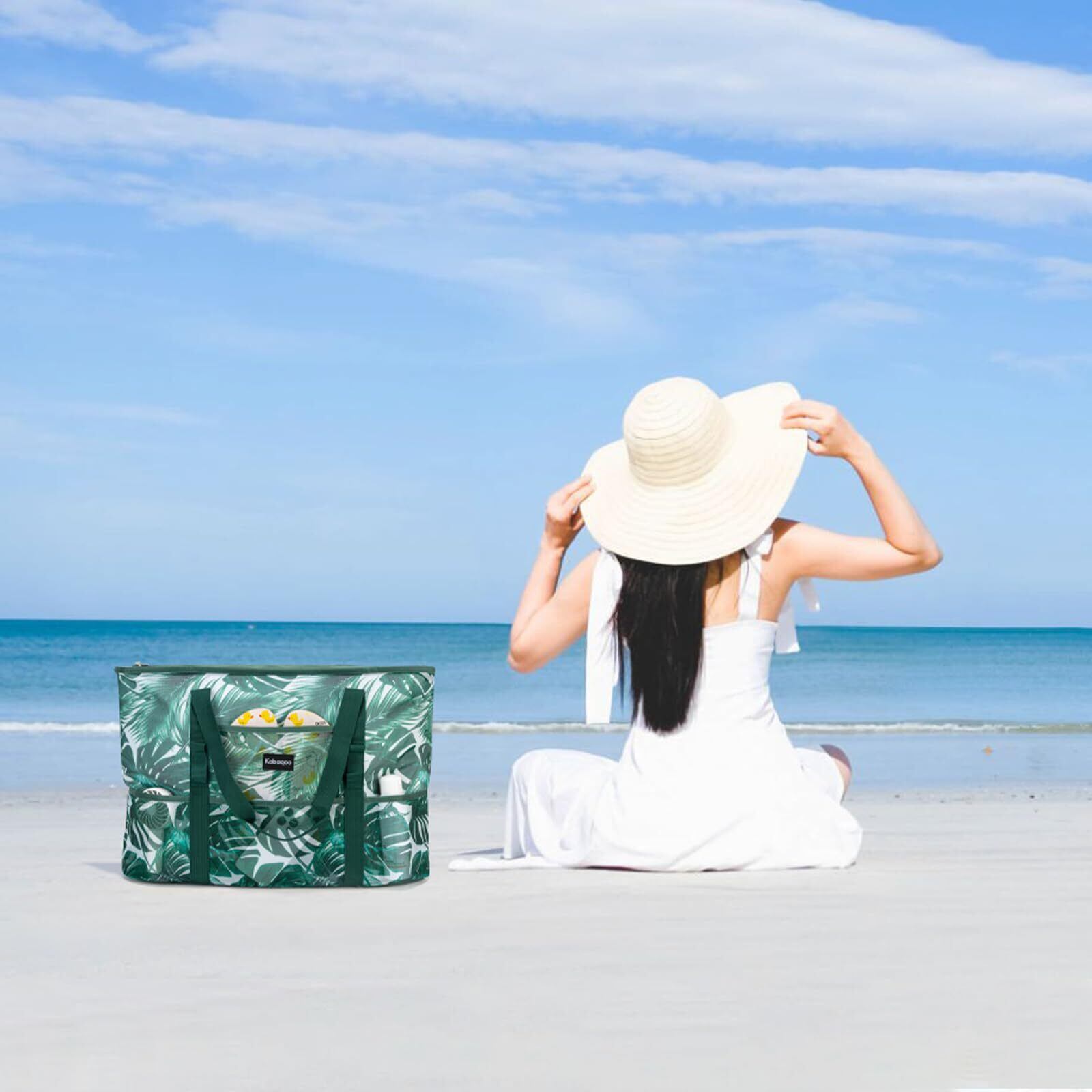 [Yukiyumi] ビーチバッグ プールバッグ 軽量 55L 大容量 防水 防砂 折り畳み可能 収納力 トートバッグ メッシュバッグ ビーチ/温泉/サウナ/ショッピング/水泳/ジム/スパ/旅行用