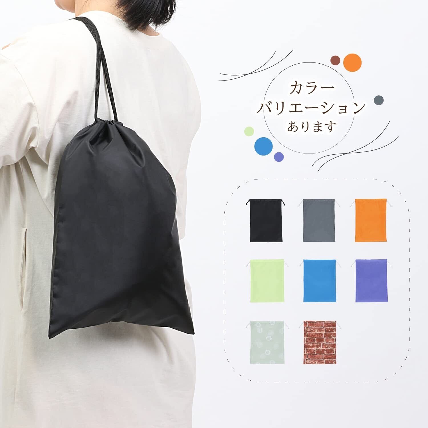 ●シューズ入れや着替え入れ、バスタオル入れなどとして使える巾着。