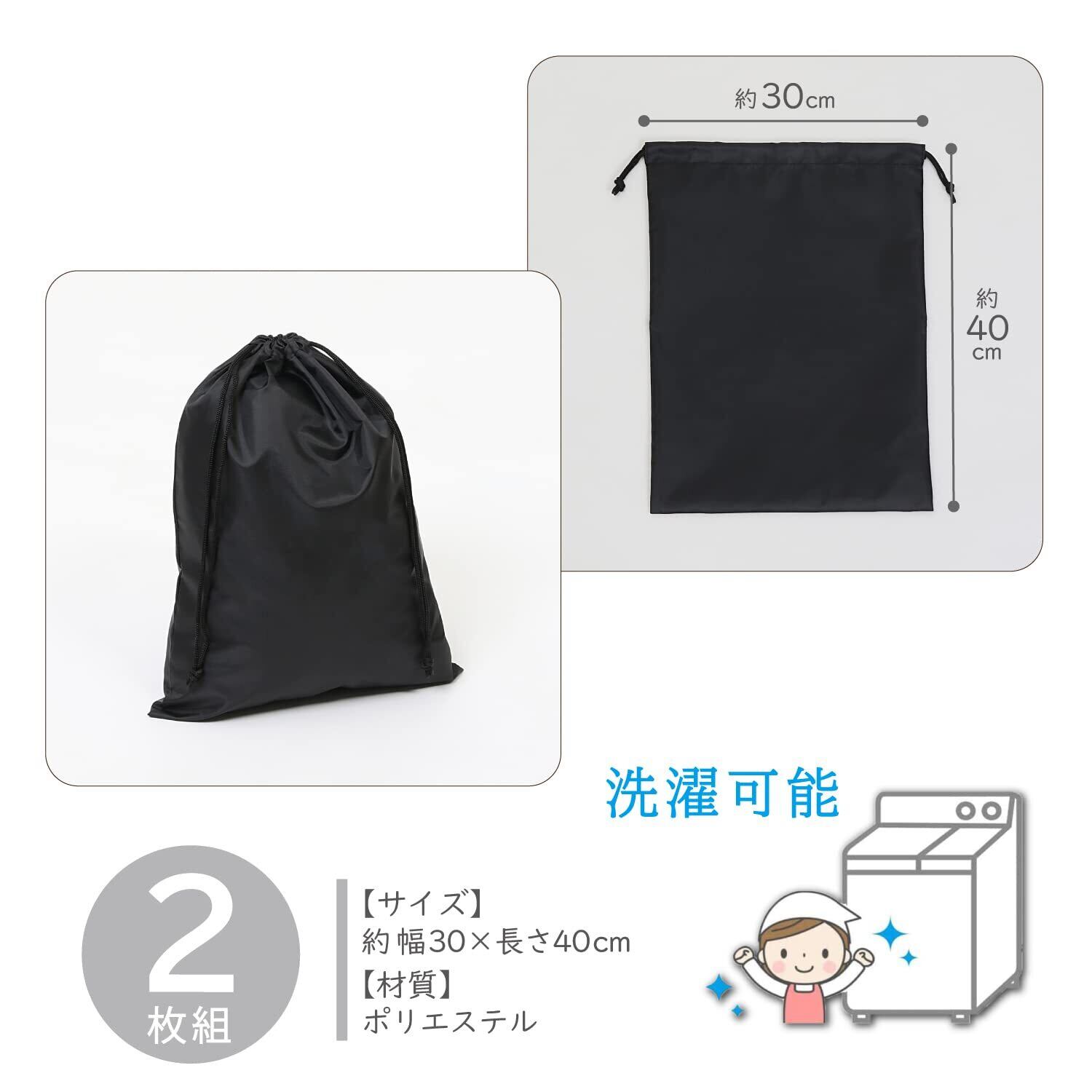 商品名:ポリエステル巾着 2枚組 ブラック
