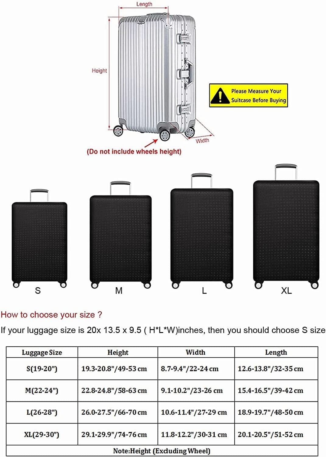【注意】注文する前に私たちのグラフのサイズを参考にしてください。私たちの商品はスーツケース保護カバーにスーツケースが含まれていないのは1つだけです。