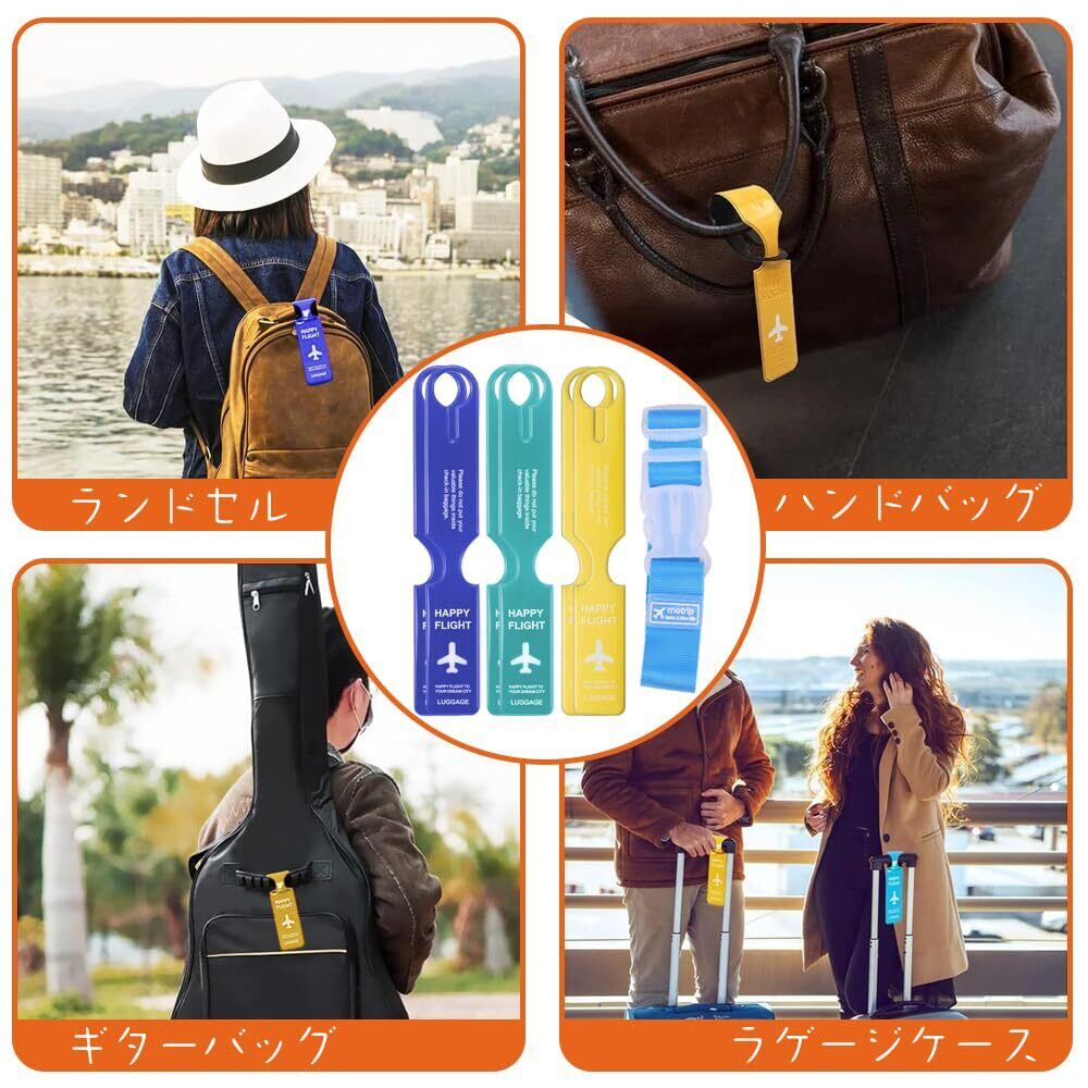 荷物タグ ネームタグ 旅行用荷物タグ スーツケースタグ ラゲッジタグ 荷物識別 3色セット(ライトブルー*2+ダークブルー*2+イエロー*2)紛失防止 超軽量 防水 紛失対策 柔軟耐用 荷締めベルト 旅行用品(1*青)