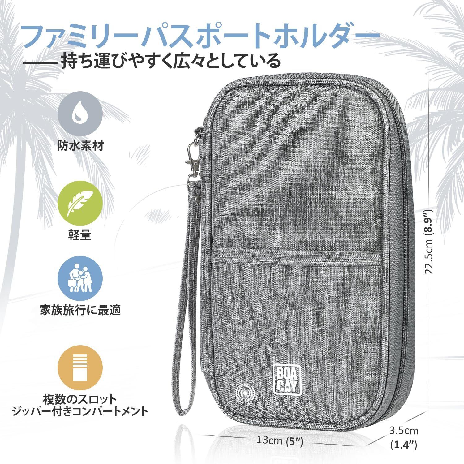 [BOACAY] トラベルドキュメントオーガナイザー、ファミリーパスポートケース、女性と男性用財布、カード・搭乗券・現金・チケット入れ、持ち運びが簡単で防水のケース