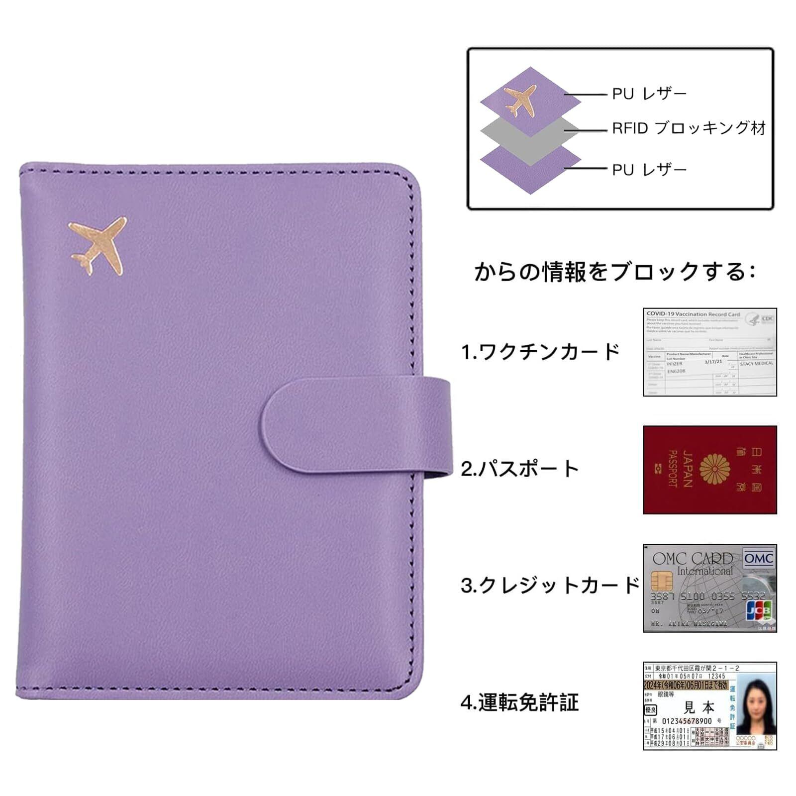 [MHKHPPO] パスポートケース パスポートホルダー パスポートスロット レディース/メンズ可愛いパスポートカバー 防水 Rfid スーツケース 多機能収納ポケット 名刺 クレジットカード 航空券 エアチケット ッド パスポートバッグ ポーチ (紫)