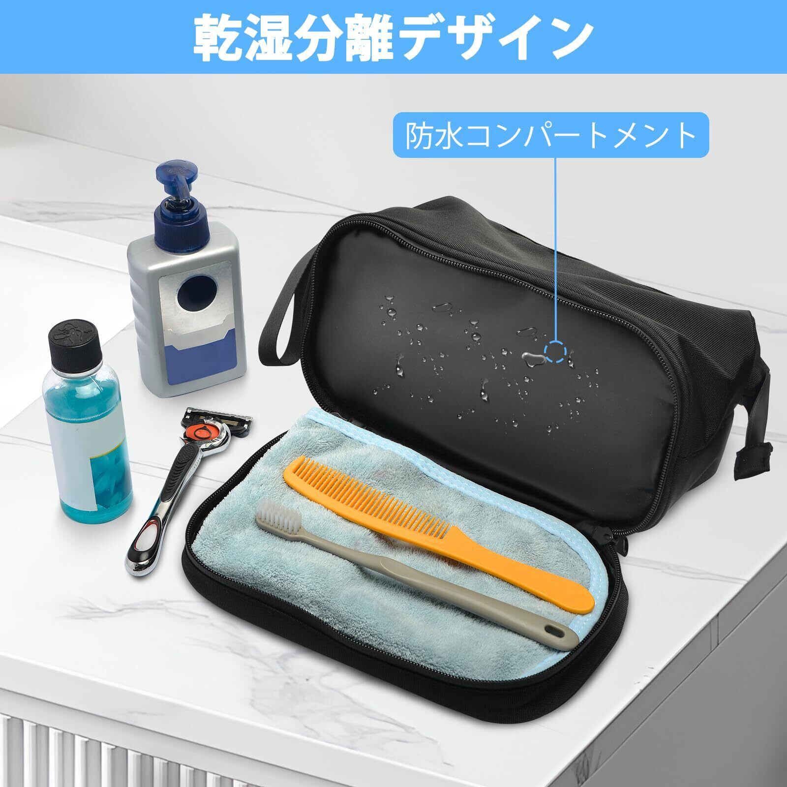 Lermende トラベルポーチ メンズ 化粧ポーチ 洗面用具 ポーチ 防水 大容量 乾湿分離 トイレタリーバッグ 旅行用ポーチ 化粧品 洗面用品収納ポーチ 多機能 持ち運び 出張 旅行用 -ブラック