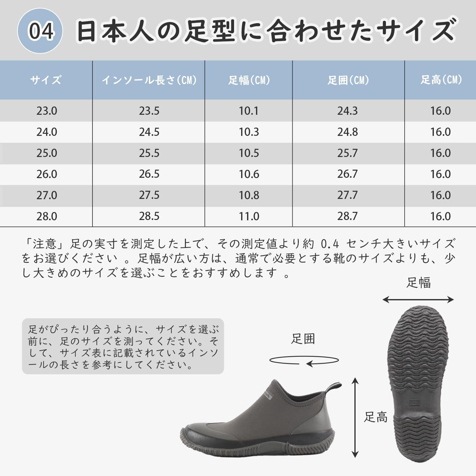 超軽量設計 – 長時間の使用でも疲れにくい! 独自の軽量配合ゴムを使用することで、従来品より大幅に軽量化。 長靴の重さが気になる方にもぴったりな設計で、快適に歩行できます。 ガーデニング、アウトドア、農作業、散歩など、あらゆるシーンで活躍すること間違いなし!