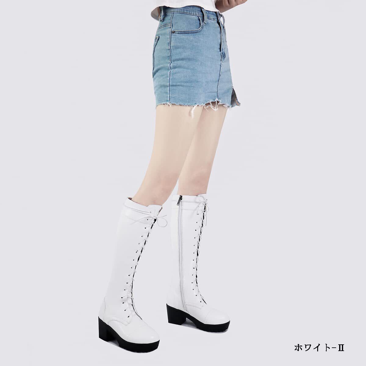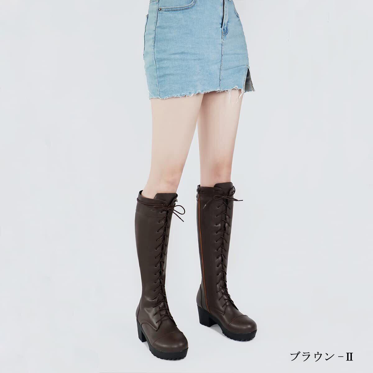 [KutuKowi] レディース 厚底 サイドジッパー ロングブーツ 編み上げ ヒール 厚底ブーツ 大きいサイズ