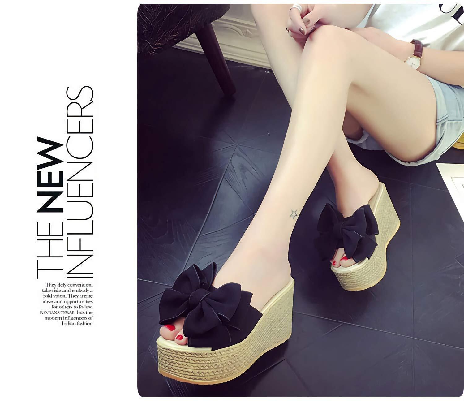 [RSWHYY] スリッパ サンダル レディーズ かわいい 厚底 ウェッジソール 蝶結び 夏 ハイヒール ビーチサンダル