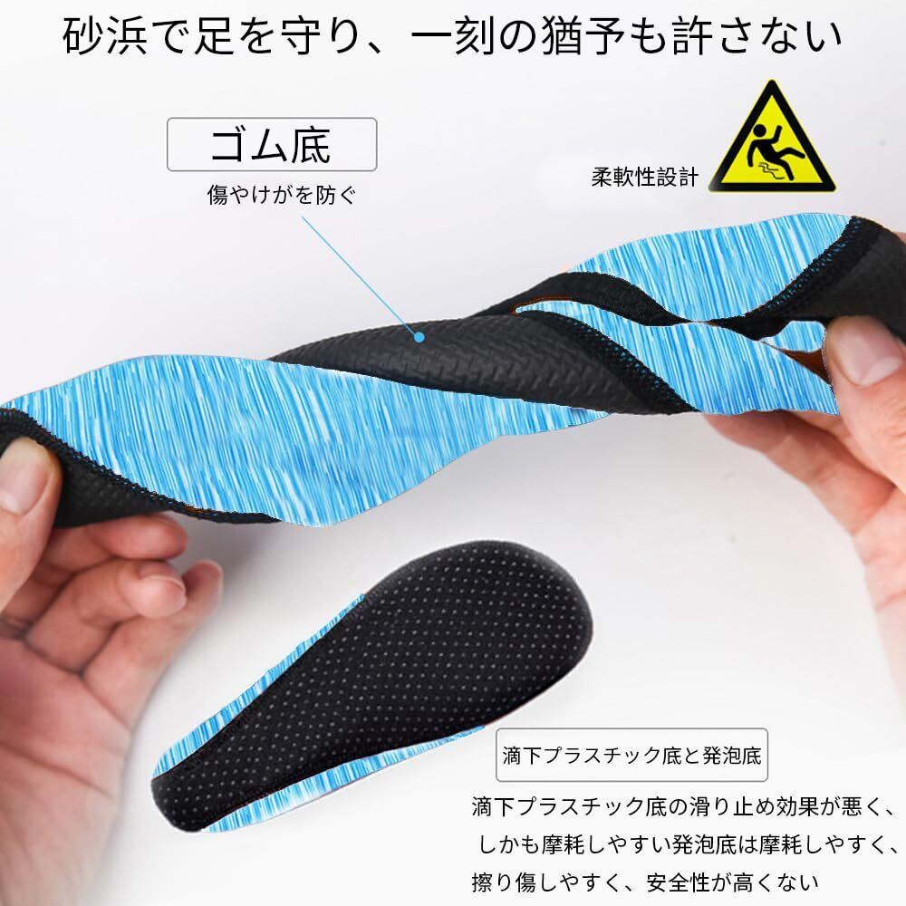 【超軽量】歩く時、軽くて足に負担を会えなくて 、履いても素足みたいな履き心地。超軽量、やわらかいで、圧縮できて、持ちやすい。とても便利です。子供によって負担がない。砂や小石が入り込んだりもしないので、子供の足を守るウォーターシューズです