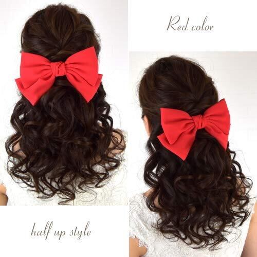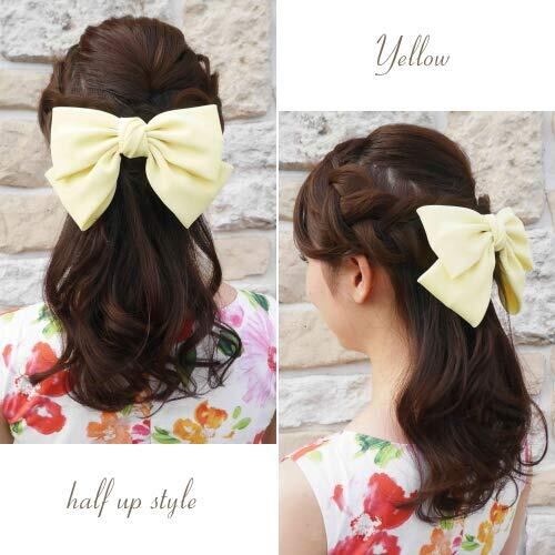バレッタ リボン シフォン カラバリ豊富 ふんわり ビッグ 結婚式 レッド ピンク イエロー ブルー グリーン ネイビー 袴 着物 振袖 同窓会