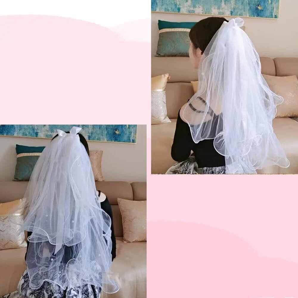 この短いベールには、絶妙な白い人工真珠が点在し。柔らかな白、控えめでエレガントな純粋なデザイン、シックな結婚式のベールはあなたの結婚式のための優れた装飾です。
