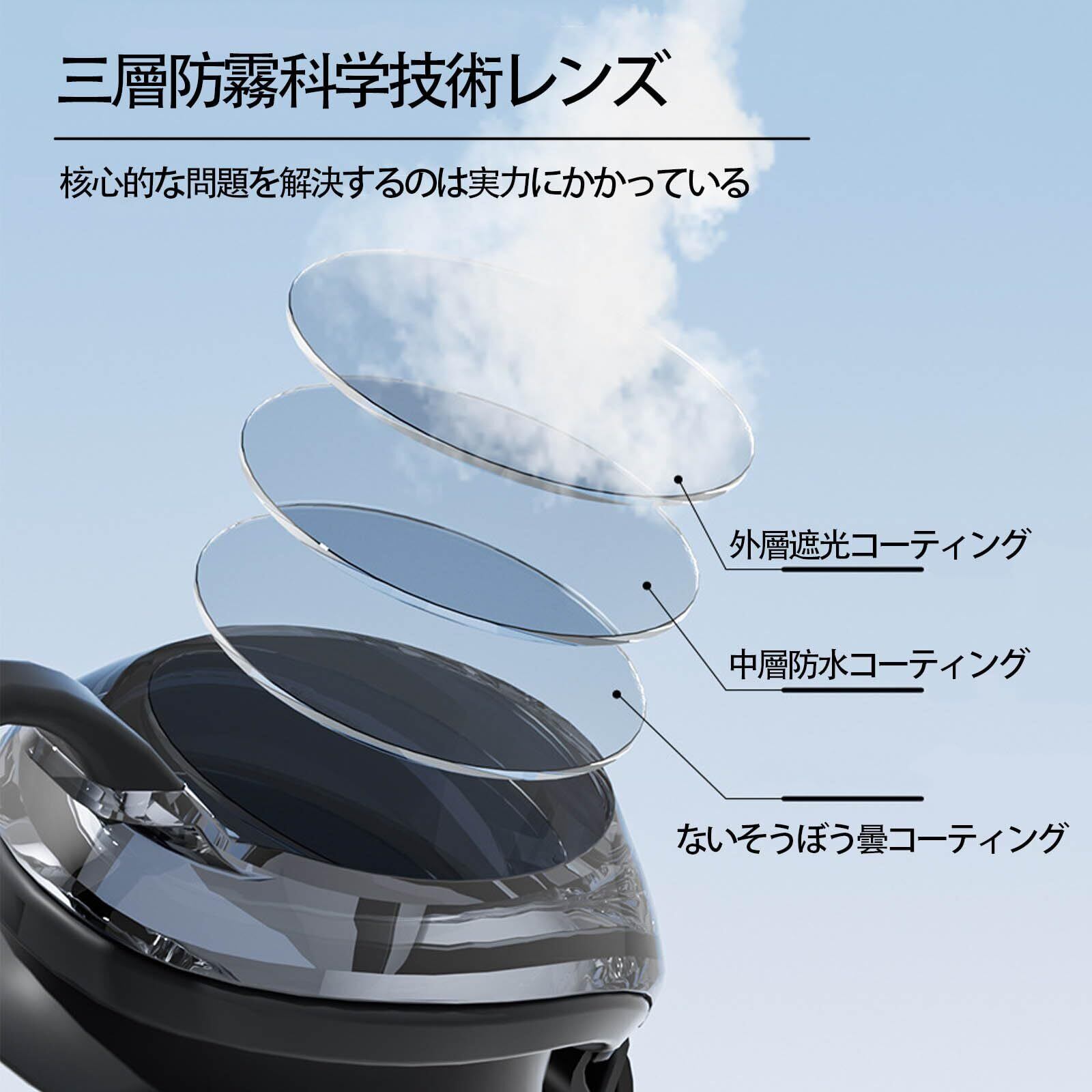 【曇り止】スイミングゴーグルの内側は、特殊な材料をコーティングした加工で、防曇することができます。