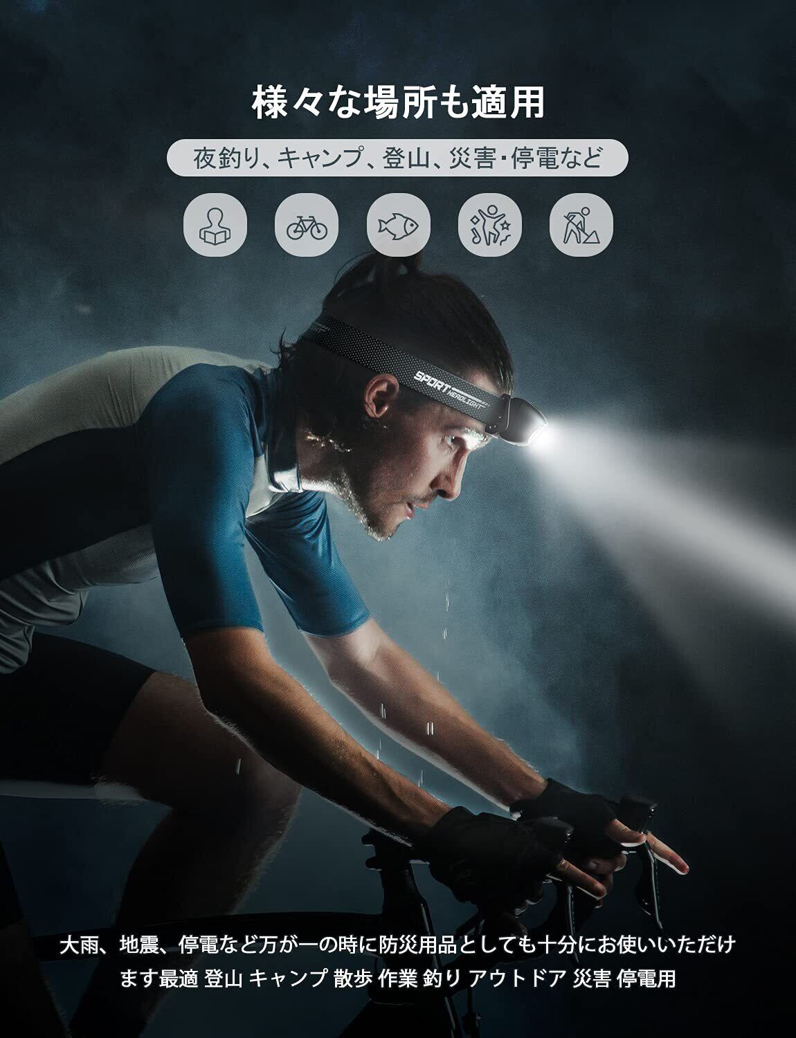 【軽量&フィット感】:ヘッドライト本体の重さは約40gと非常に軽量です、サイズは3x3.3x6cmだけで。また、ソフトベルトを採用され、夜釣りなどの場合は長時間装着しても首にストレスを与えません。登山、釣り、キャンプ、ハイキングや自動車整備などでのアウトドア活動に活躍します。