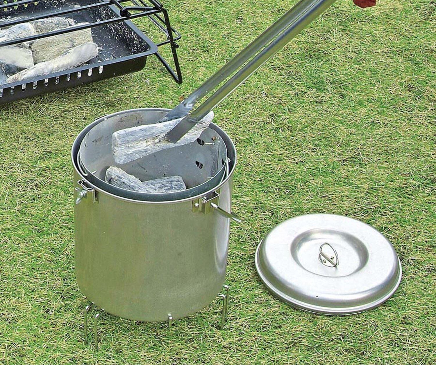 特徴1: 簡単に炭火が起こせる火起こし器と簡単に炭の後片付けが出来る火消し壺のセット