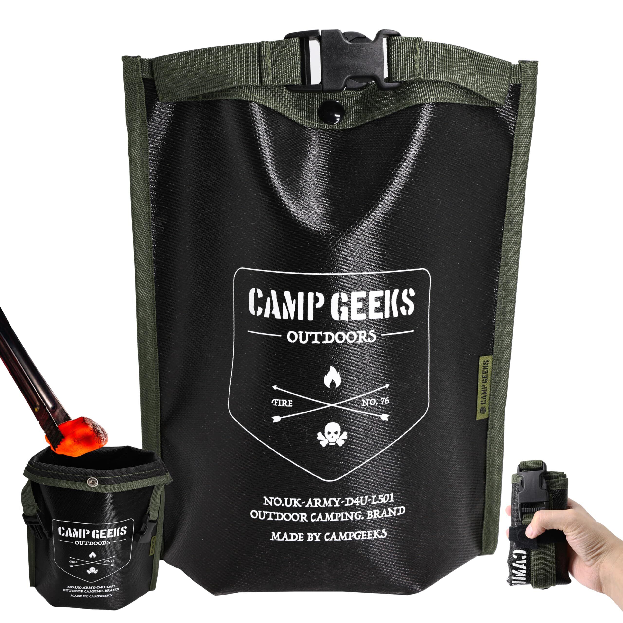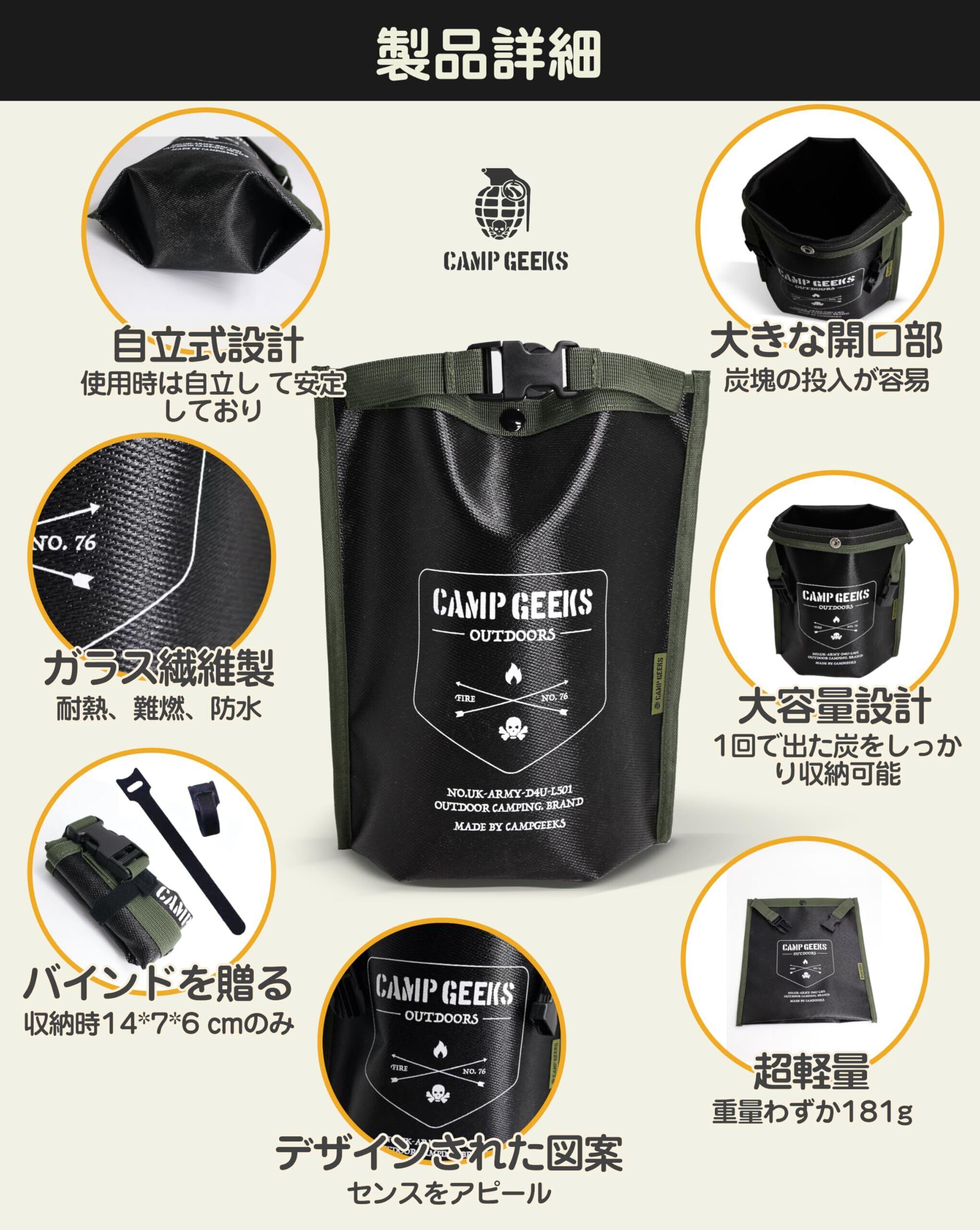 CAMPGEEKS 火消し袋 炭消し袋 炭処理専用 30×26cm 軽量設計コンパクト大容量 折りたたみ自立式 ガラス繊維製 防水・耐熱・難燃 キャンプ用炭捨て袋 火消し壺代替品