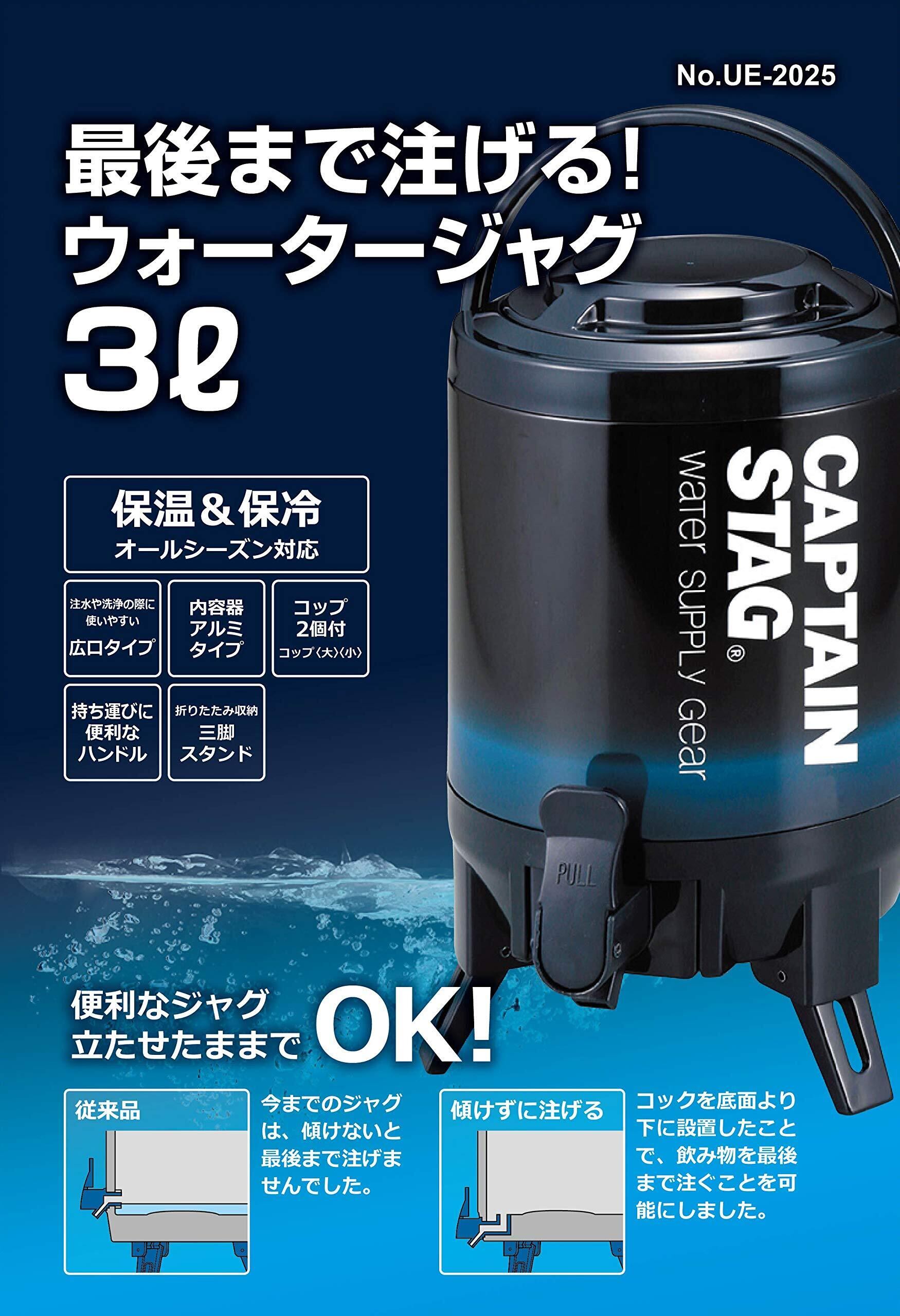 キャプテンスタッグ(CAPTAIN STAG) ジャグ タンク 最後まで注げるウォータージャグ 容量3L/6L/8L/10L 保温保冷 広口タイプ コップ付き ハンドル付き 三脚スタンド ネイビー/ビバレーデザイン