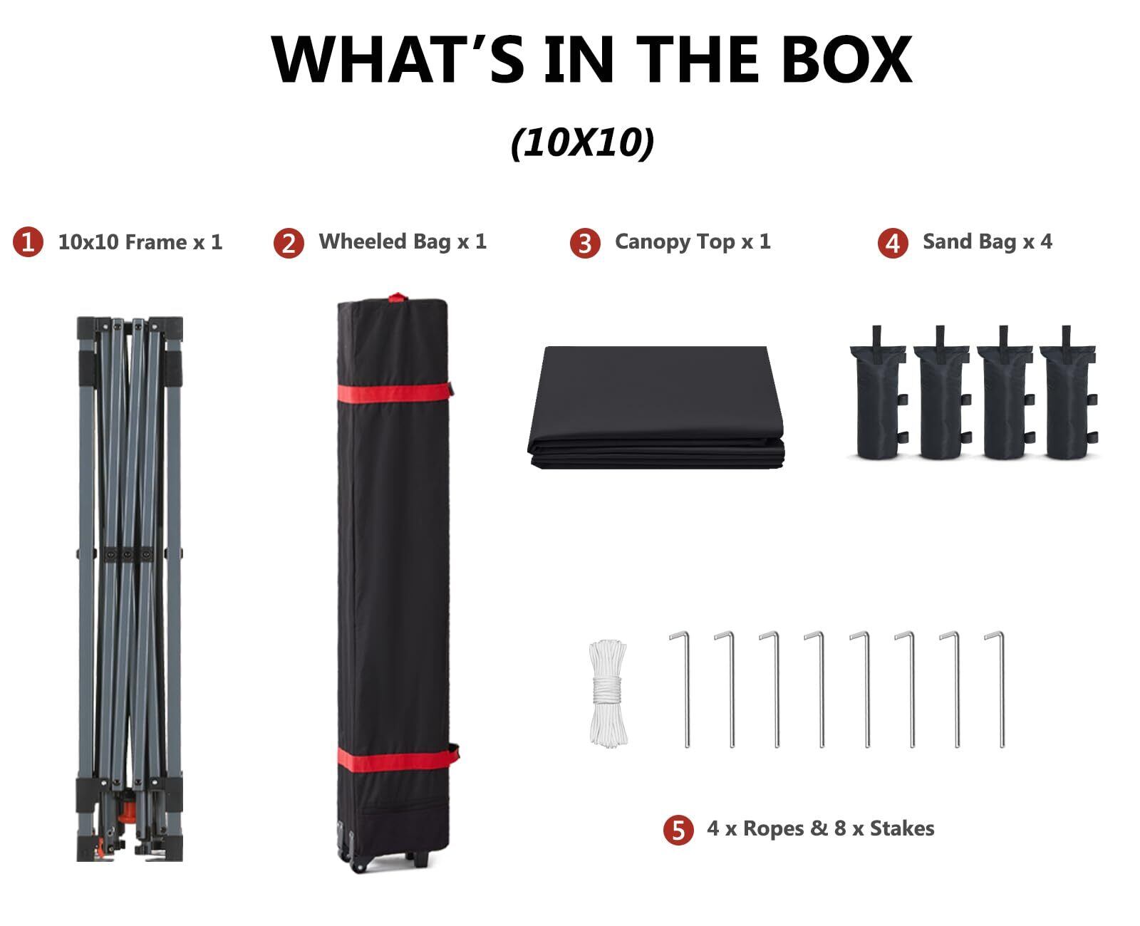 【特典ウェイトバッグ付き】テント本体に加え、パッケージにはペグ×8本、ロープ×4本、サンドバック×4個、 専用収納キャスターバッグが含まれています。さらにサンドバッグ×4個追加で付属しており、テントの安定性を効果的に高めることができます。
