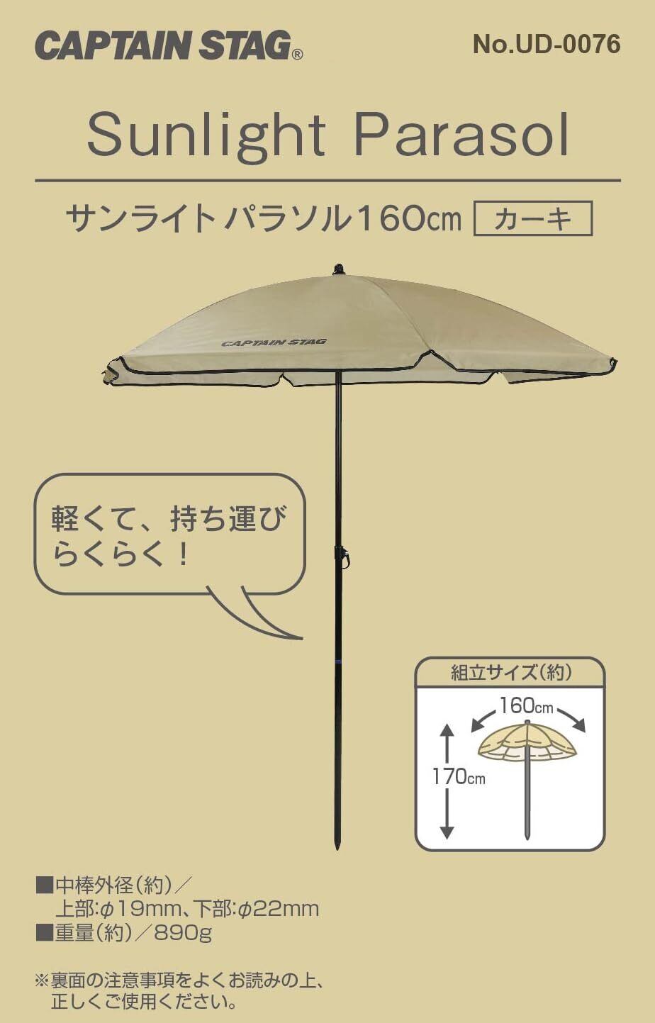 キャプテンスタッグ(CAPTAIN STAG) パラソル 傘 日傘 日除け サンライトパラソル 径160×高さ170cm カーキ/グリーン UD-76/UD-77