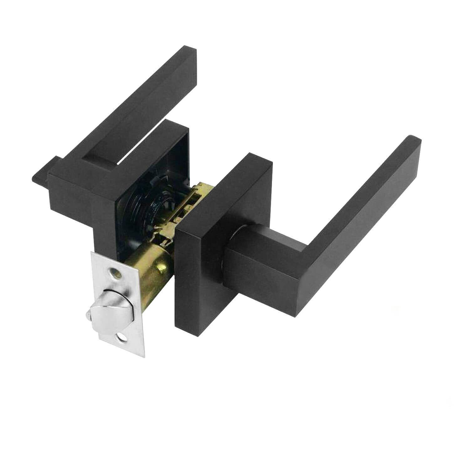 堅塁金物 ドアノブ 空錠 鍵なし 黒 レバーハンドル 通路や廊下に適用 下向きの回転でドアを開け 軽量化のアルミ合金の主体 適用扉厚30-50mm ラッチは60mmあるいは70mmに調整可能
