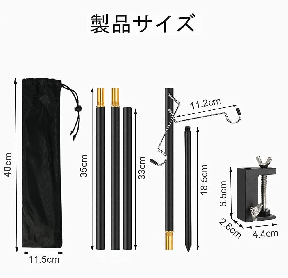 ►【製品仕様】設置時の高さ:約160cm。収納の長さ:約40cm。 パッケージ重量:約350g。 ランタンポール:アルミ合金製。直径:1.2cm、全長:約35cm。セット内容:ペグ、ランタンポール、ランタンハンガー。