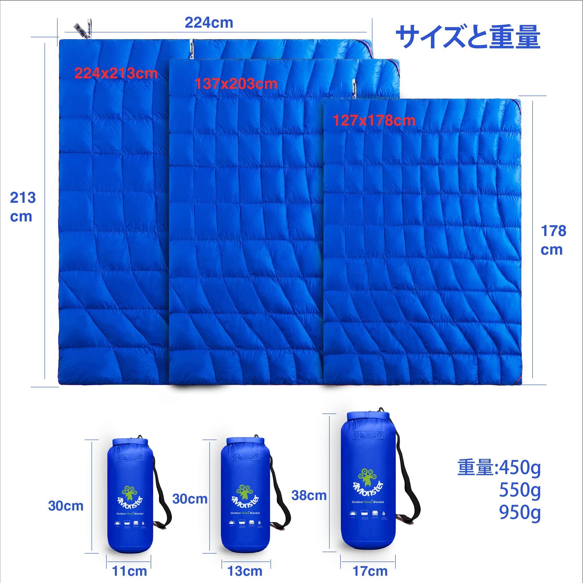4Monster ダウン ブランケット マルチブランケット 防寒 アウトドア キャンプ 旅行 軽量 防水 防風 コンパクト ひざ掛け 肩掛け 掛け布団 暖かい 柔らかい 収納袋付き 春秋冬使用でき Wave-Blue-L