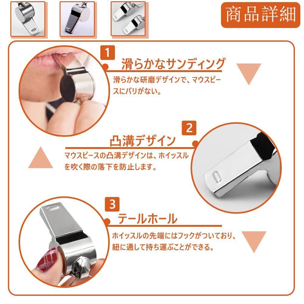 【商品サイズ】ホイッスルの長さは約4cm、高さは約2cm、幅は約1.5cm、総重量は約24g、個々のホイッスルは8g。ホイッスルの色はシルバーホワイト。
