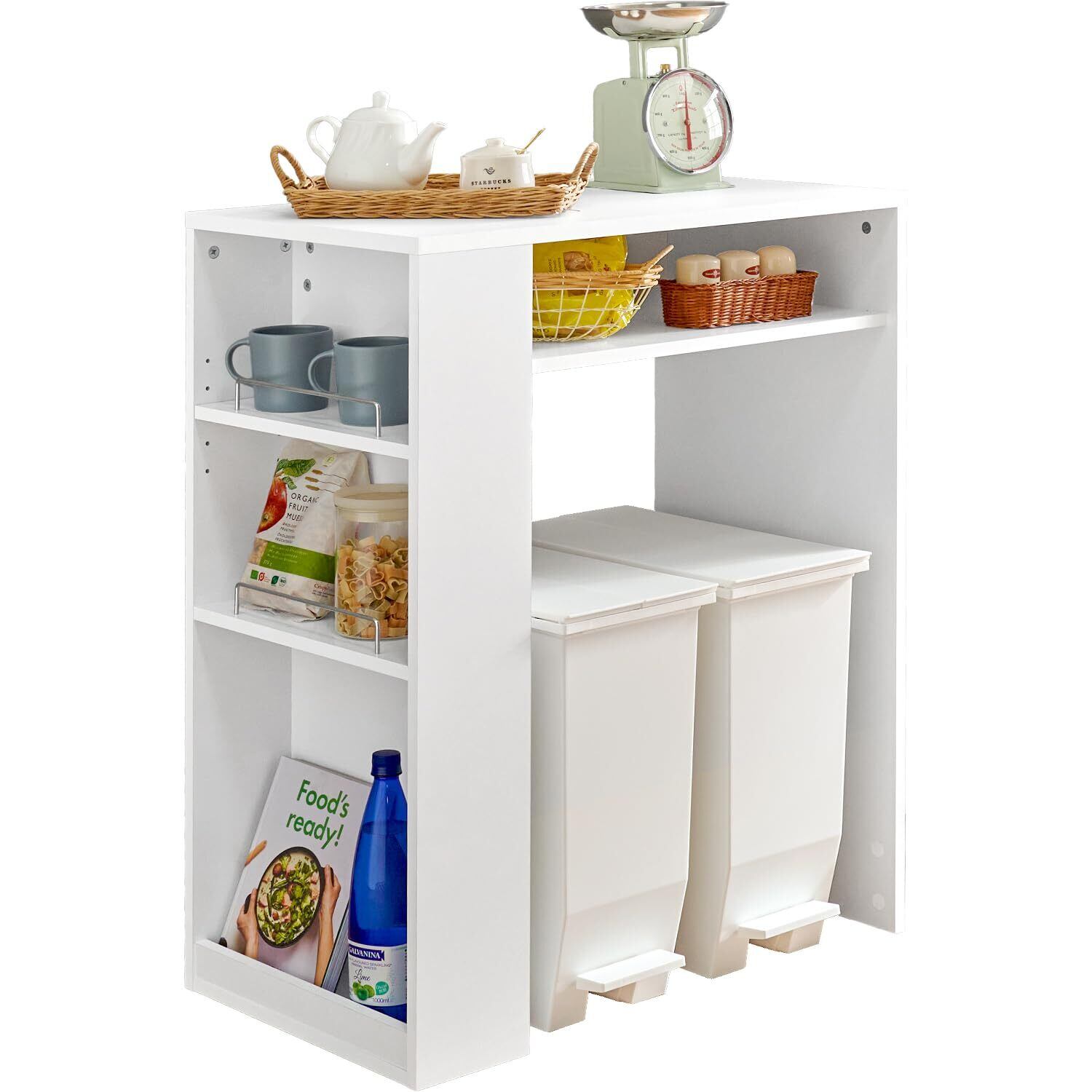 萩原 レンジ台 キッチンラック ゴミ箱上 ラック オープンラック 幅 71 奥行 42 高さ90.5 天板 耐荷重 20kg ホワイト 組立品 VKR-7146-WH