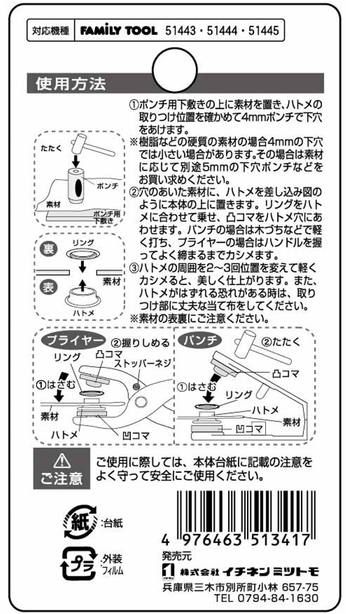 イチネンアクセス ツール事業部 FAMILY TOOL(ファミリーツール) ハトメ 両面ハトメ アルミ製 100組入 51341 4mm(#200)