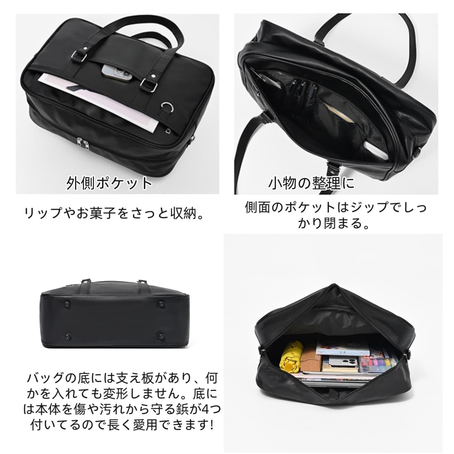 [Osteenii] スクールバッグ 合皮 スクバ 女子 高校生 学生 JK 制服 鞄 PU 大容量 茶色 黒 通学
