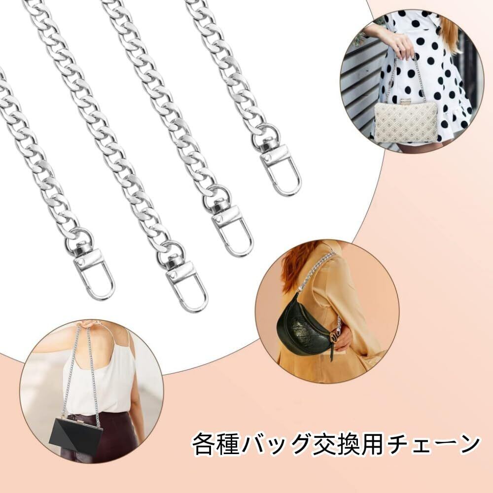 バッグチェーン 4本入り バッグ持ち手 ショルダーストラップ ハンドバッグチェーン フラットチェーン30/60/100/120cm