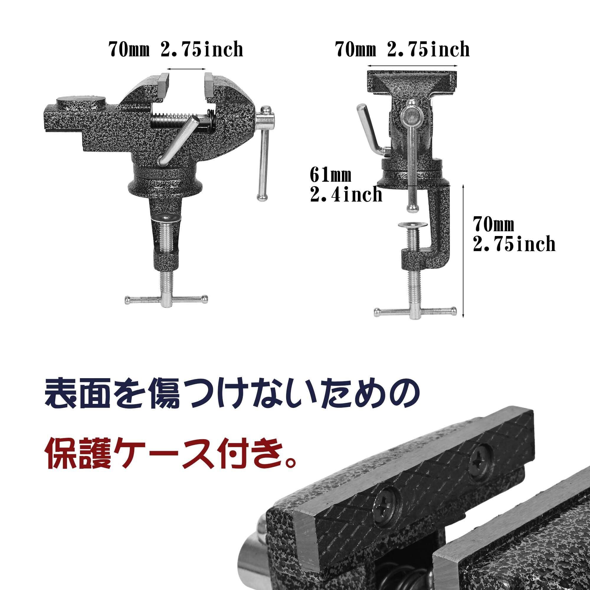 ohbien 万力 卓上 70mm 回転式 最大開口約75mm 小型卓上万力 360° 角度任意調整可能 回転盤クランプ部開口 0~65mm 回転 ジョー ユニバーサルフィクスチャ 切削 研磨 切断 加工 固定 接着 強力 携帯用作業台 卓上 テーブル 締め 工具ホビーや日曜大工、工作などに最適
