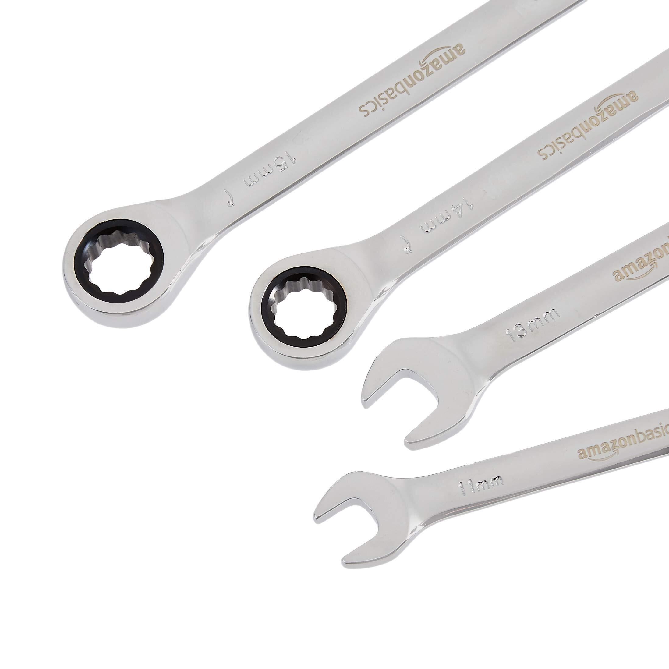 クロム仕上げラチェットレンチセット5ピース・素材 : 耐久性のあるクロムバナジウム (Cr-V) スチール、落とし鍛造・硬化処理済み