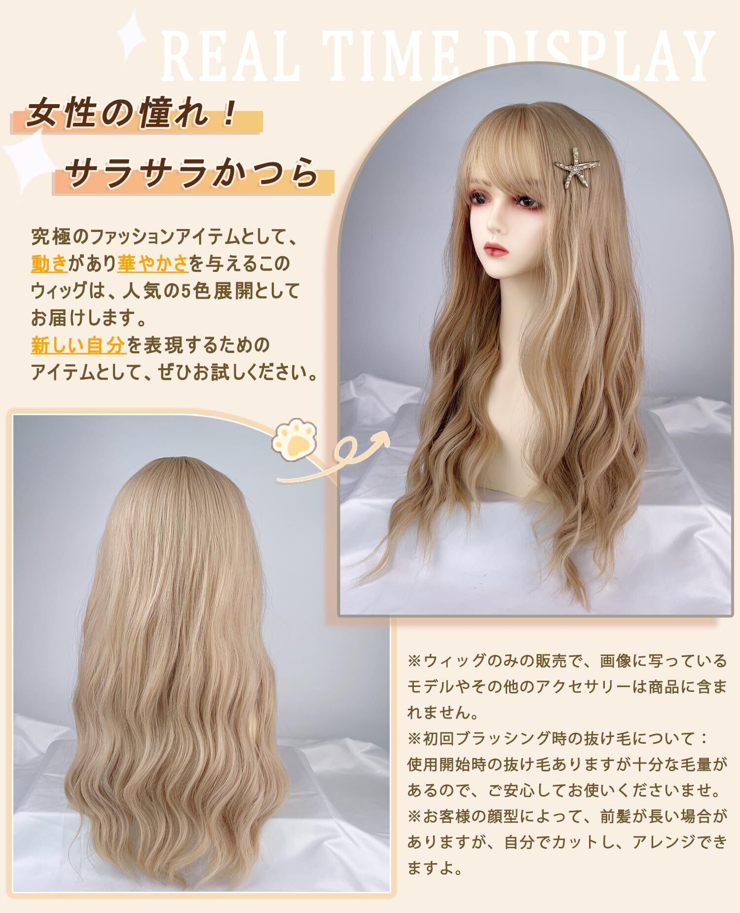 【アフターサービス】商品やサービスに関するお問い合わせはいつでも歓迎です。お客様一人ひとりに最適な製品体験を提供するため努めています。【ご注意】①使い始め一番最初のブラッシングの際、抜け毛はありますが十分な毛量で仕上げていますので、ご安心してお使いくださいませ。②写真と実物の色がPCやスマホ画面の見え具合によって若干異なる場合がございます。予めご了承ください。③ウィッグのみの販売で、画像に写っているモデルやその他のアクセサリーは商品に含まれません。