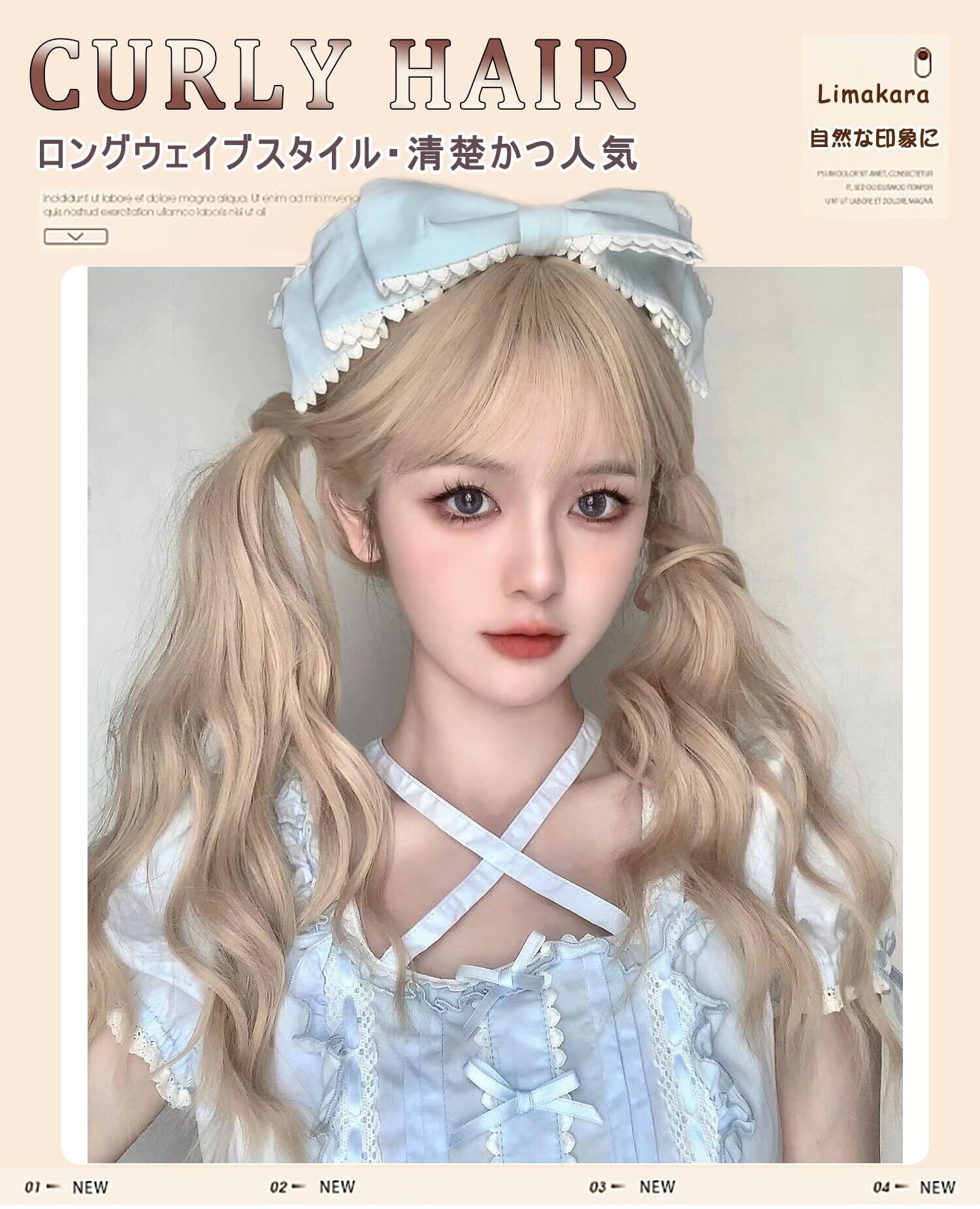 Limakaraウィッグ ロング 巻き髪 金髪 自然 フルウィッグ ナチュラルロング レディース カール 女装 ウェーブ ぱっつん前髪 かつら ロリータ コスプレ wig ファッション 耐熱 小顔 日常 原宿系 人気 地雷系 ネット/櫛付き 白金色