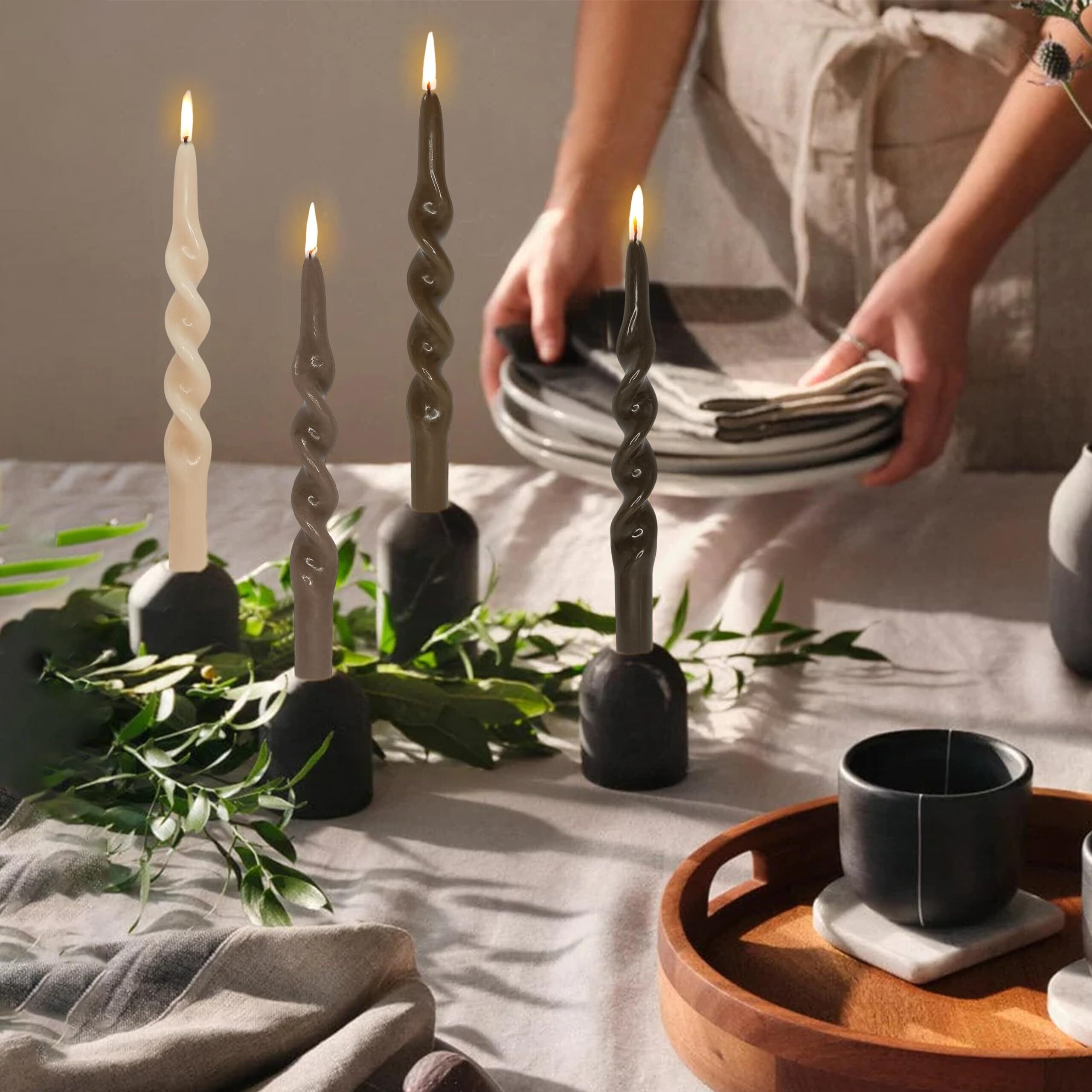 手作りらせん状のテーパーキャンドル 蝋燭 カラーグラデーション キャンドル 人気 ろうそく 結婚式 家居裝飾 無香気 ロウソク 4個入り (10 Inch, G-Brown)