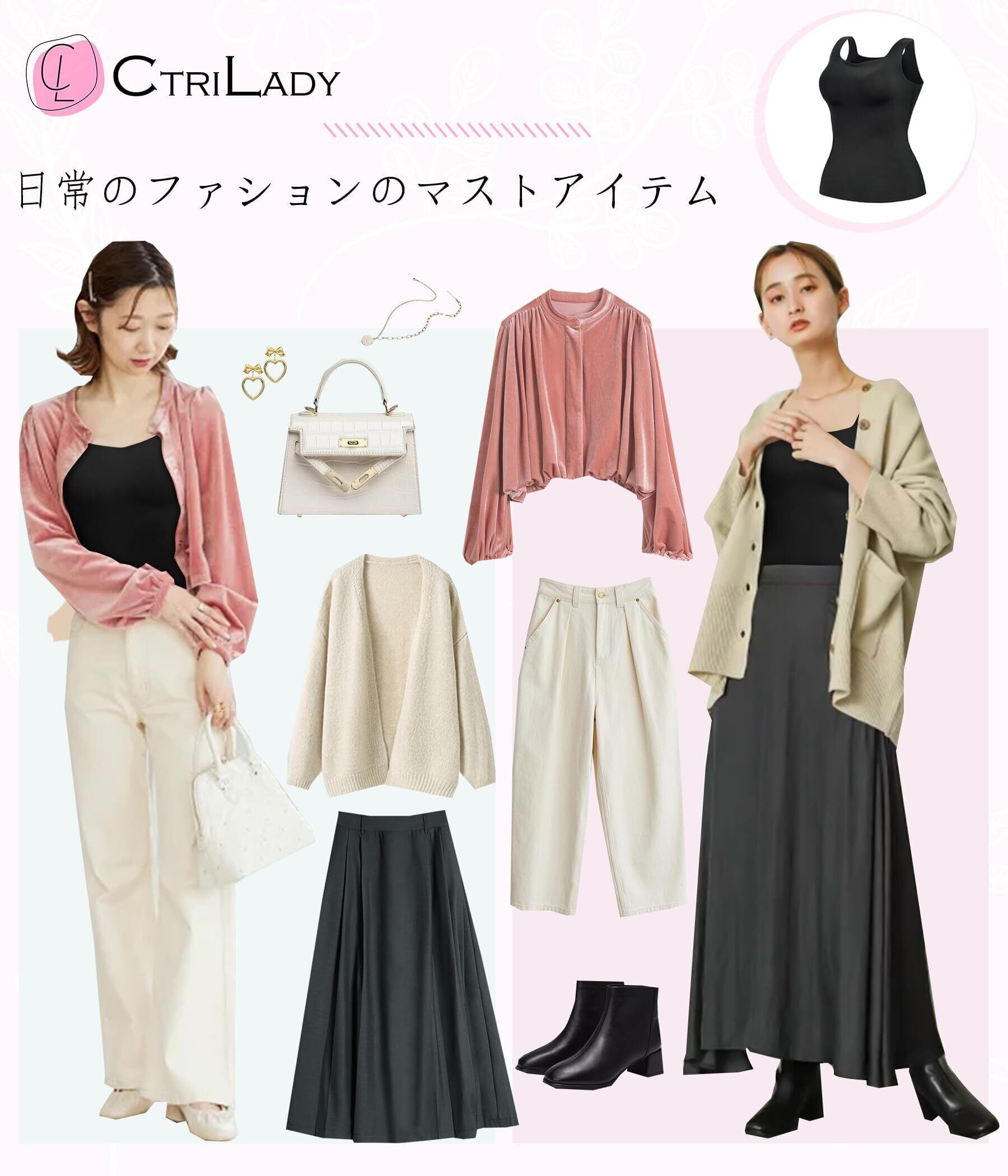 [CtriLady] タンクトップ レディース 肌着 カップ付きキャミソール 黒 補正下着 ブラトップ 女性用下着 ウエストニッパー 通気性 伸縮性