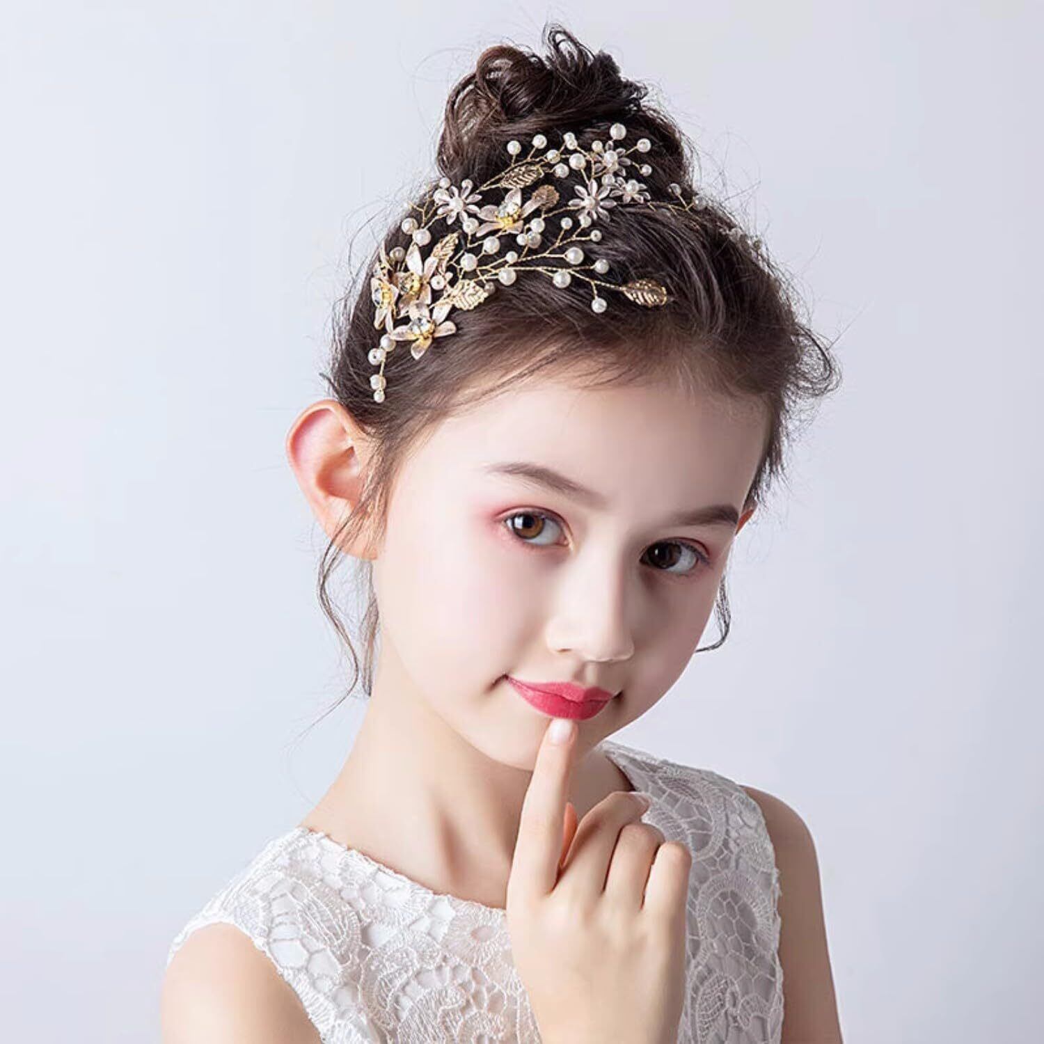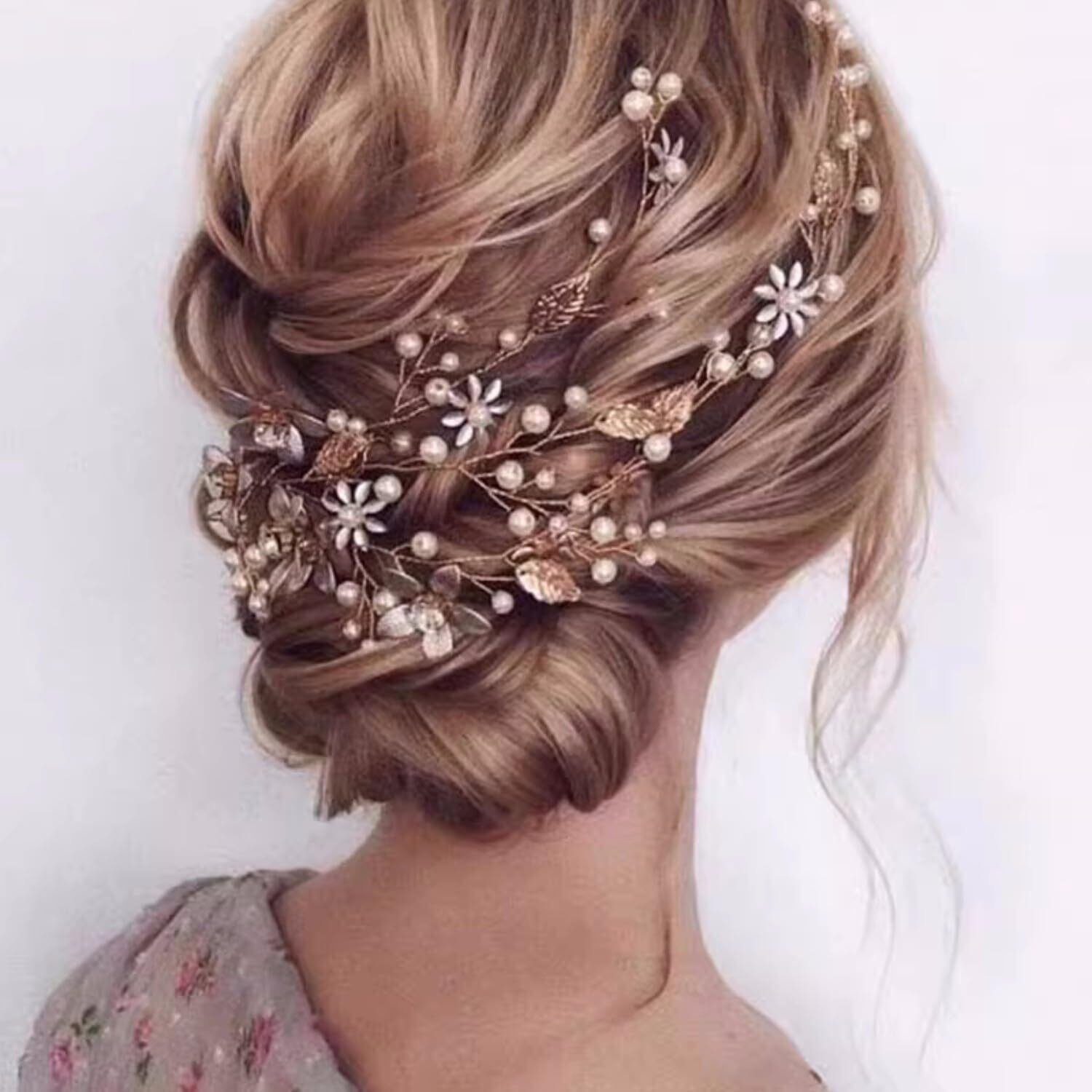SIYINGSAERY ウェディング ヘアアクセサリー ヘッドドレス 小枝 花 ブライダル 髪飾り 花嫁 カチューシャ ヘアピン パール ラインストーン 和風 髪留め 女の子 撮影 結婚式 披露宴 成人式 入学式 卒業式 発表会 ダンス パーティー用 (ゴールド)