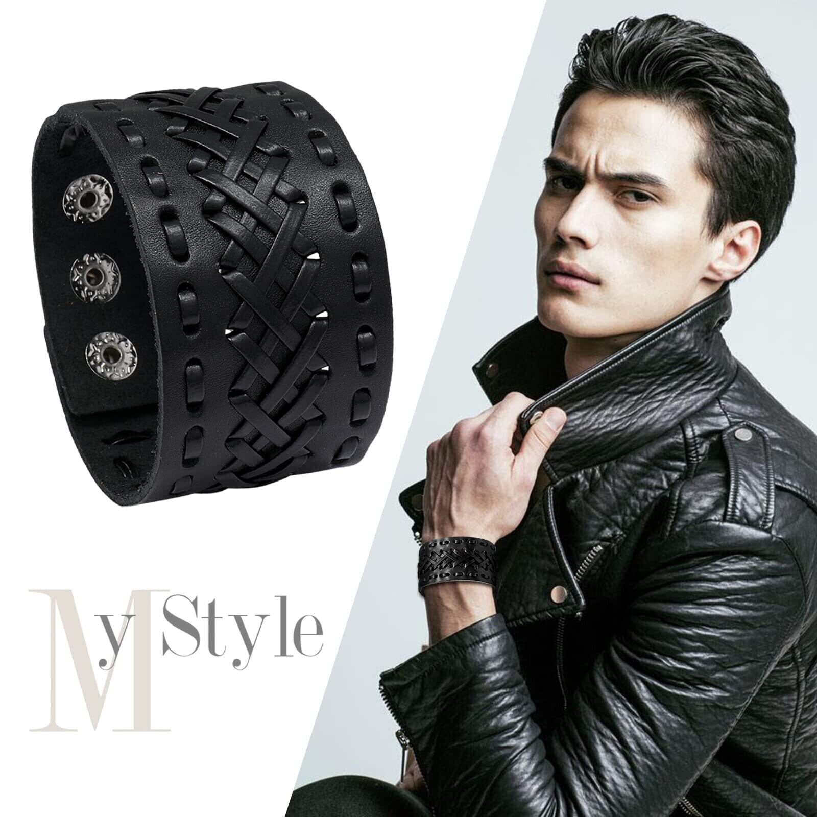 [Aroncent] ブレスレット メンズ レザーベルト 編み 幅広 バングル かっこいい アームバンド 腕輪 ベルト アンティーク ロック系 パンク系 v系 ゴシック アクセサリー コスプレ ハロウィン クリスマス プレゼント