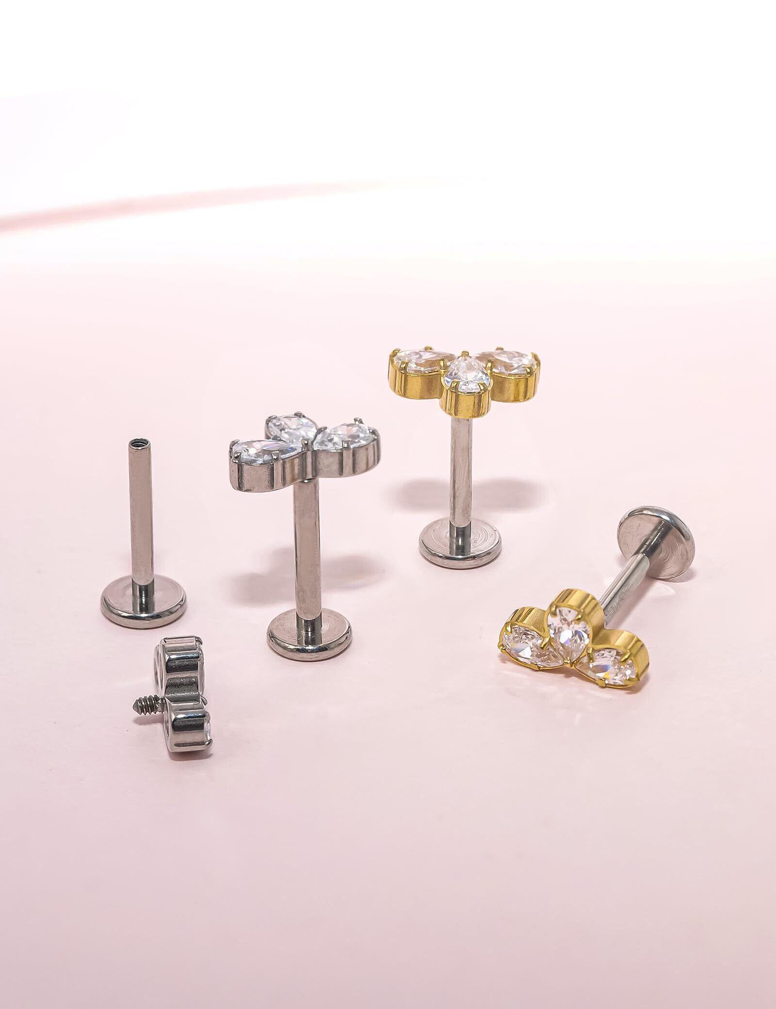 スイートなデザイン--チタンボディピアスは軽量で、耳、口、鼻などに負担をかけません。入浴時や就寝時もピアスをつけたままにしておけます。内ネジ式のフラットバックデザインで、ラブレ・スタッドは安全性を保ち、簡単に緩んだり落ちたりしません、 また、着脱も簡単で、紛失の心配もありません。