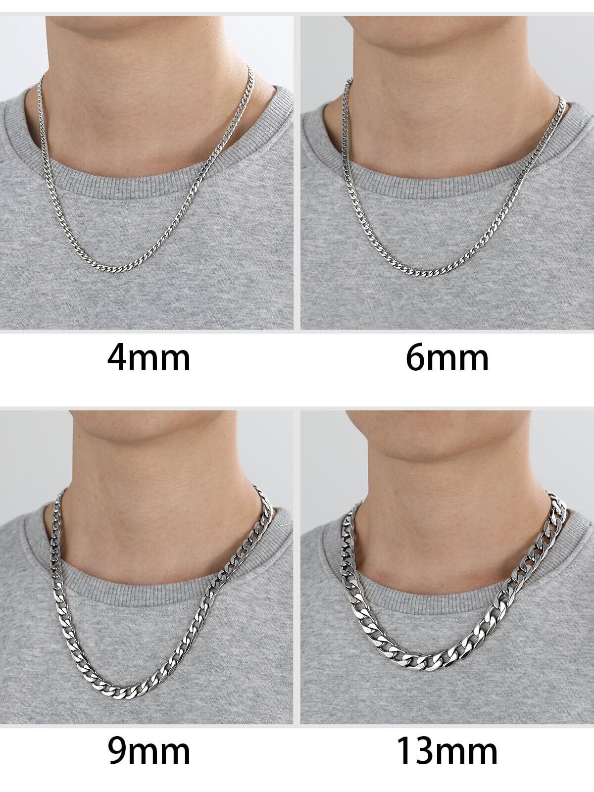 【色も!太さも!長さも選べる!】ネックレスチェーン幅4mm、6mm、9mm、13mm、チェーンの長さ45cm、50cm、55cm、60cm、65cm、70cm、75cm、定番で人気のシルバー、ゴールド、ブラックの3色、全84種類を揃えました!