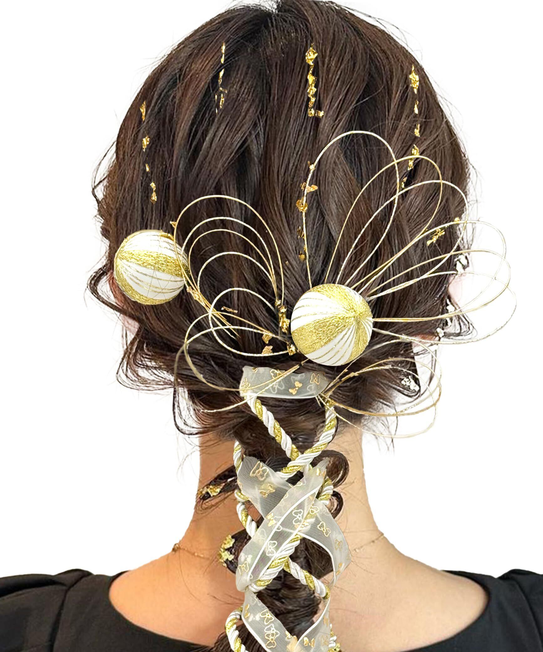 [JZOON] 髪飾り 成人式 水引 金箔 銀箔 組紐 人気 ロープ ゴールド シルバー ヘアアクセサリー 前撮り 振袖 卒業式 結婚式 和装 袴 着物 浴衣に ブライダル 花嫁 ヘッドパーツ J0026