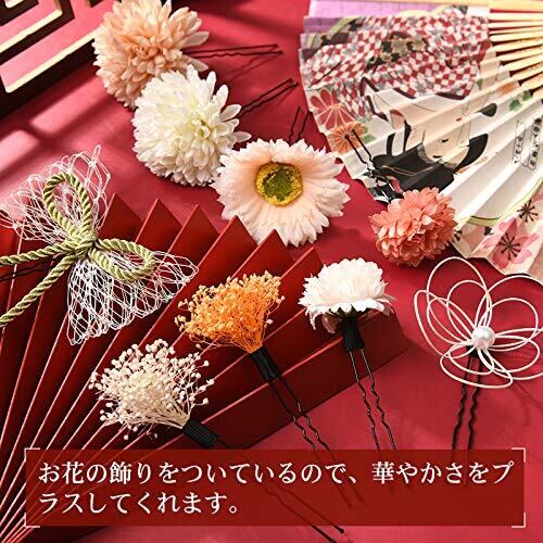 【かわいい髪飾り】着物にスゴく合っています。大小さまざまなサイズの髪飾りが入っているのでアレンジしやすいです。Uピン仕様の髪飾りは簡単に取り付けられやすいです。