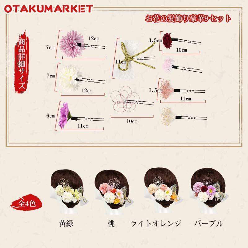 [OTAKUMARKET] 髪飾り 成人式 七五三 9点セット 卒業式 つまみ細工 振袖 袴 着物 和装 結婚式 浴衣 花 ドライフラワー 着物 髪 飾り 髪留め ヘアアクセサリー 4カラー