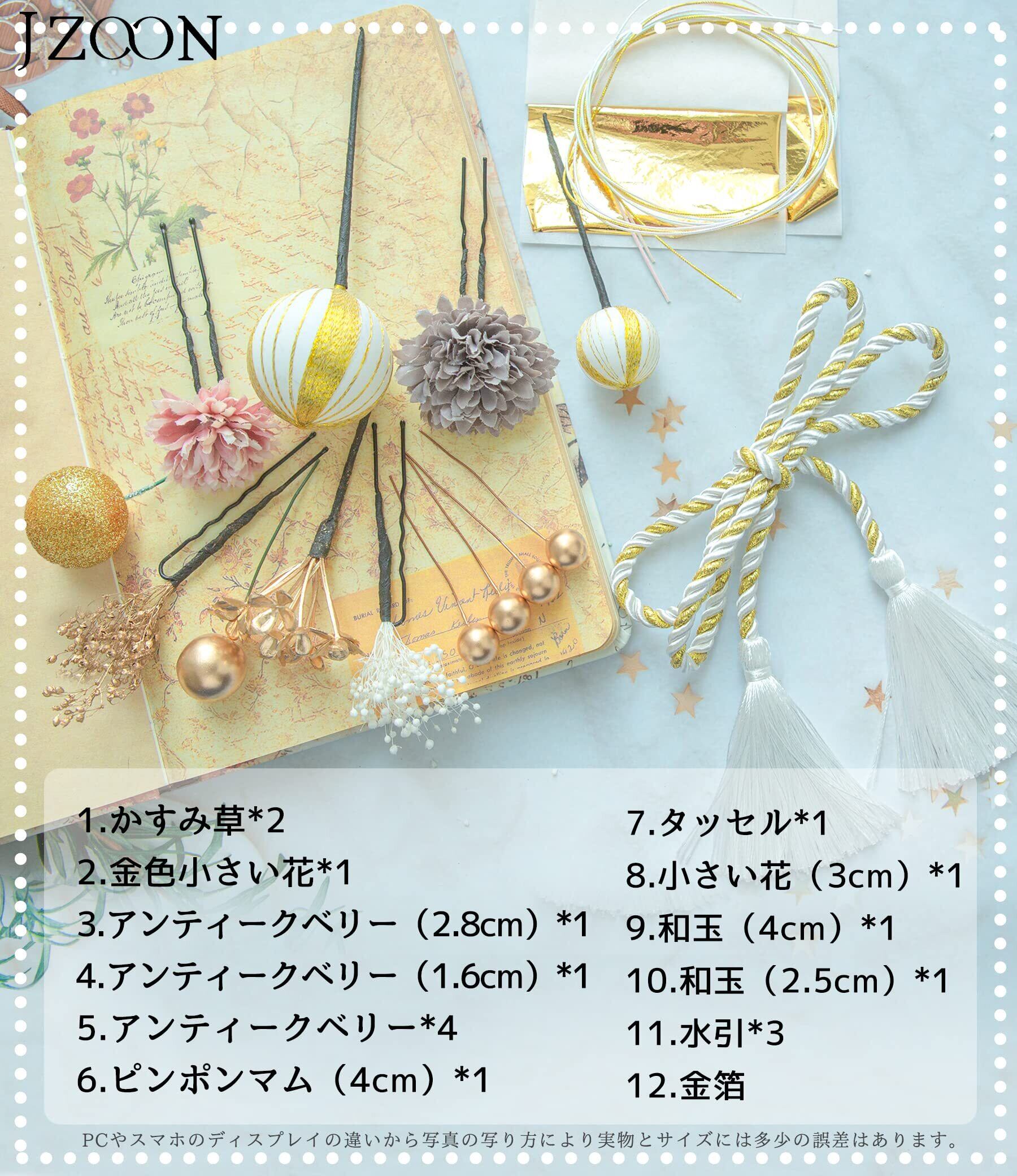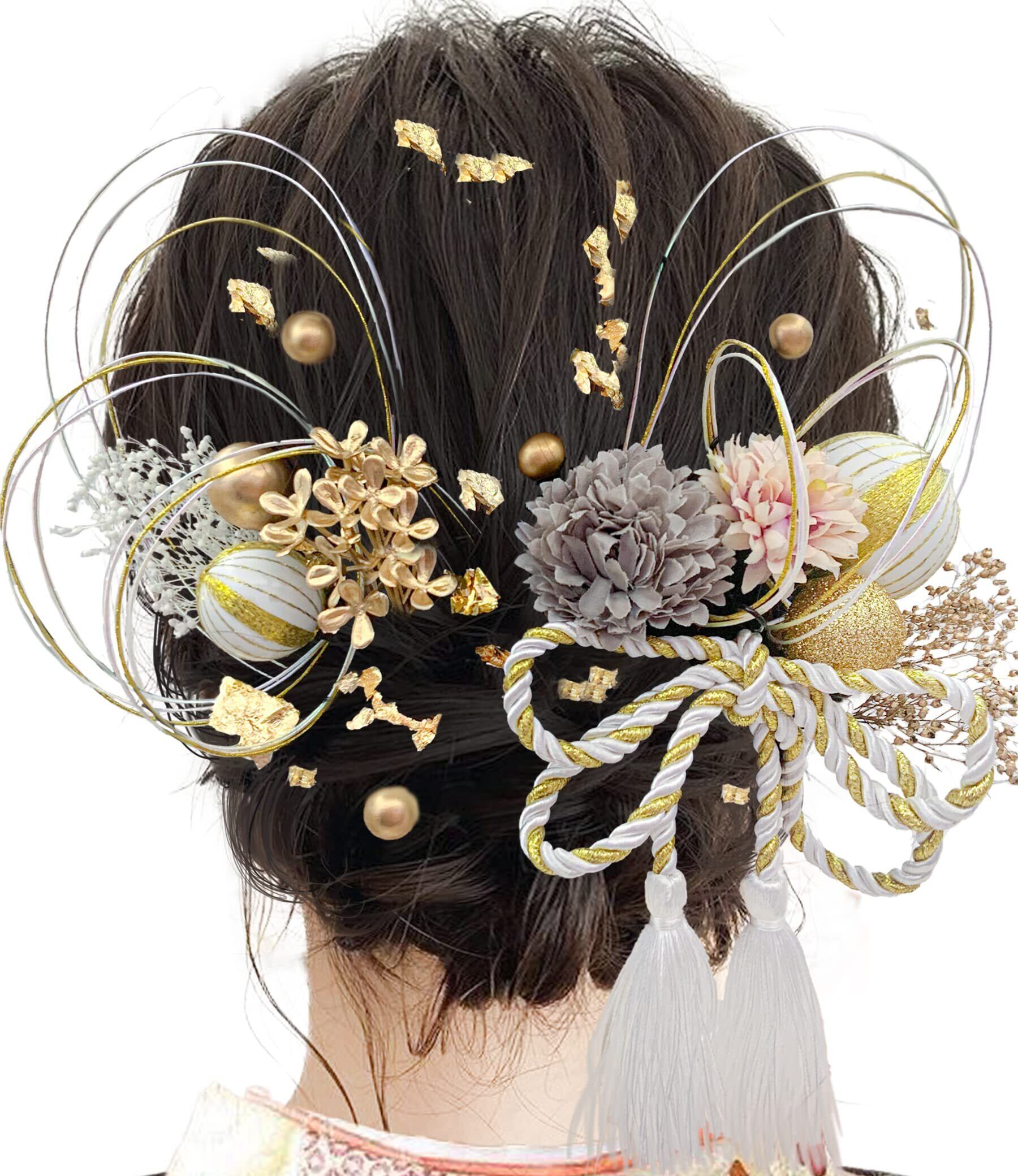 [JZOON] 髪飾り 成人式 浴衣 髪飾り 七五三 金箔 卒業式 結婚式 水引 袴 振袖 和装小物 造花飾り 着物 和装[F1005]